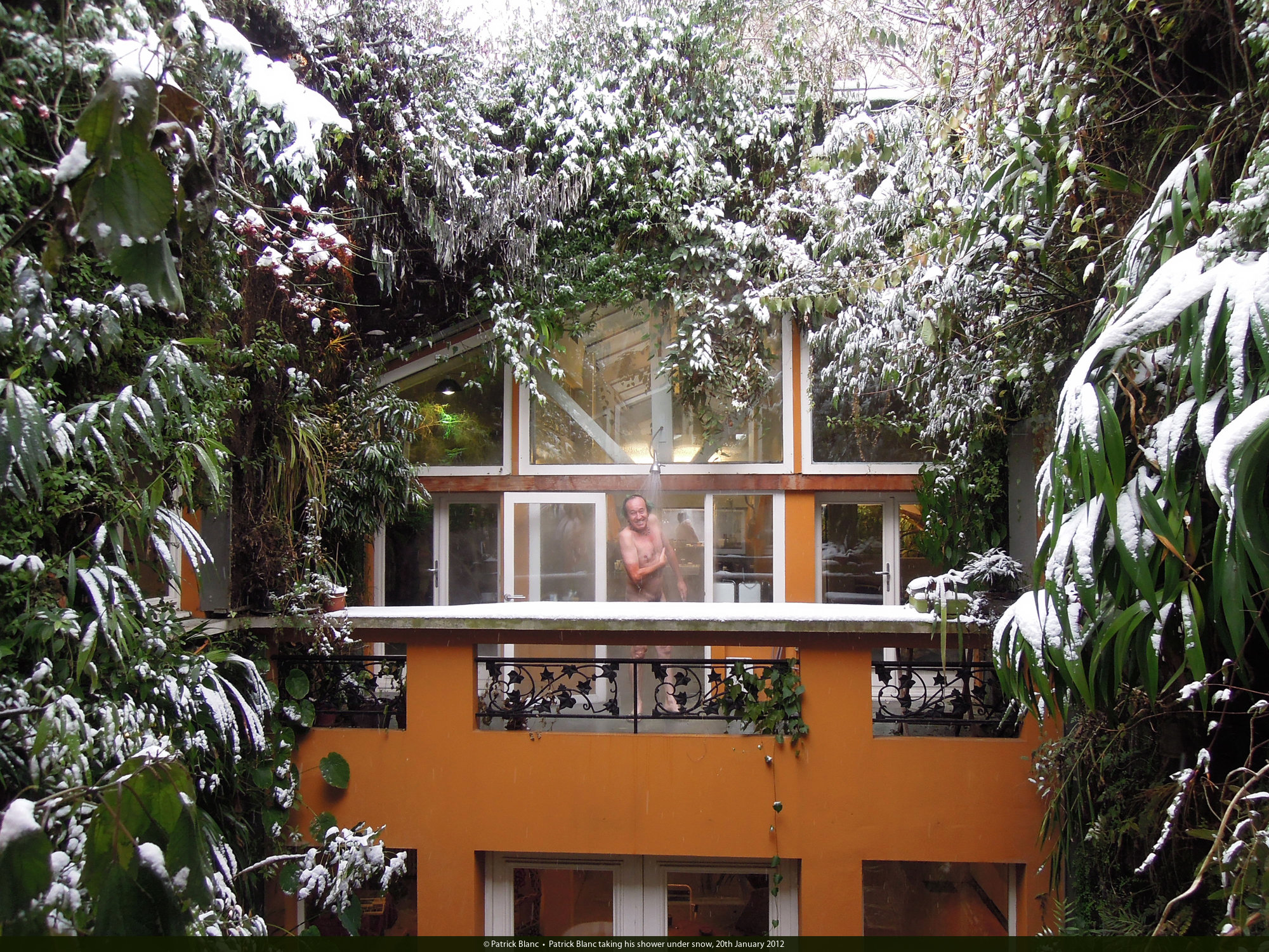 Patrick Blanc taking his shower under snow, 20th January 2012