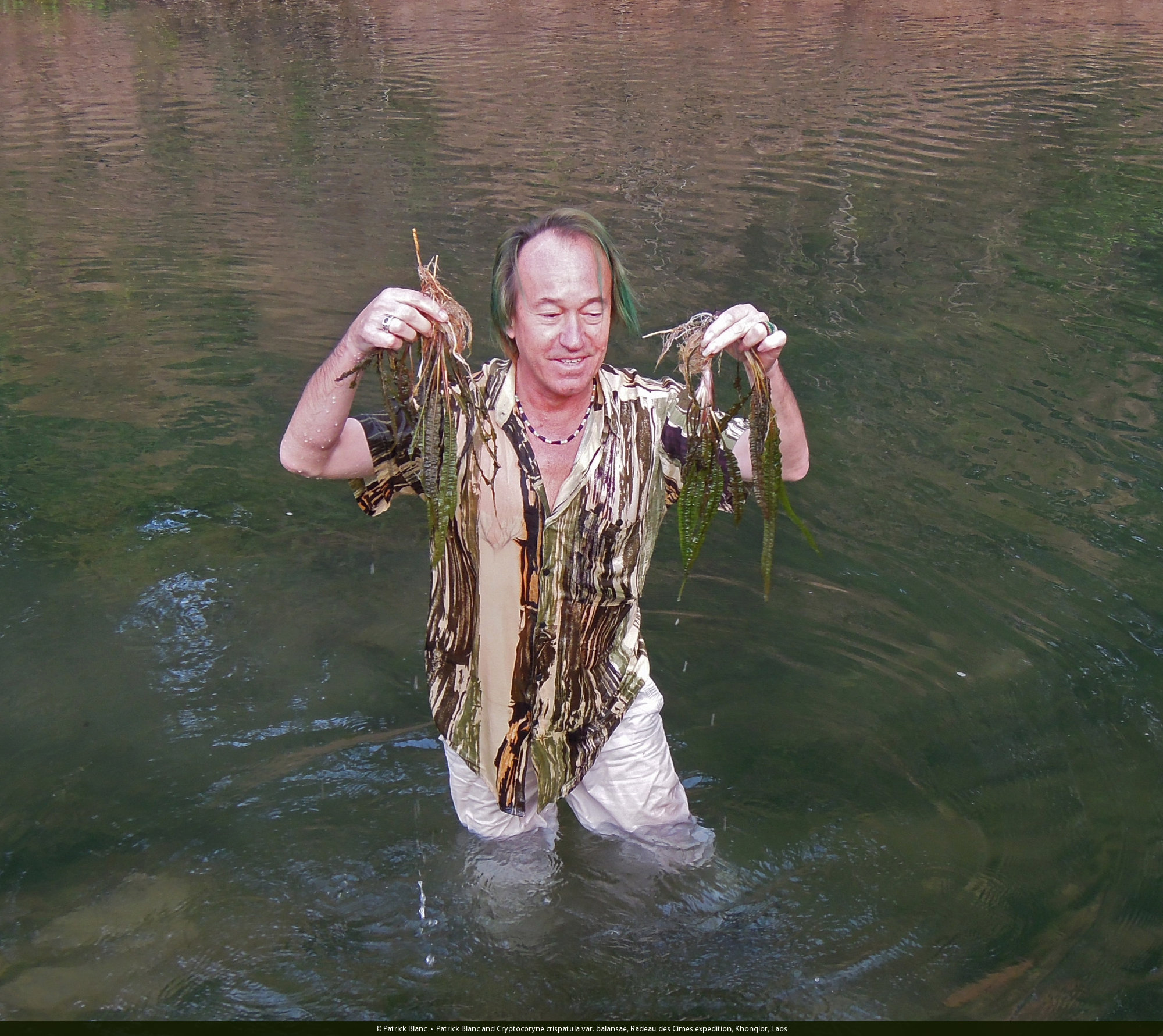 Patrick Blanc and Cryptocoryne crispatula var. balansae, Radeau des Cimes expedition, Khonglor, Laos