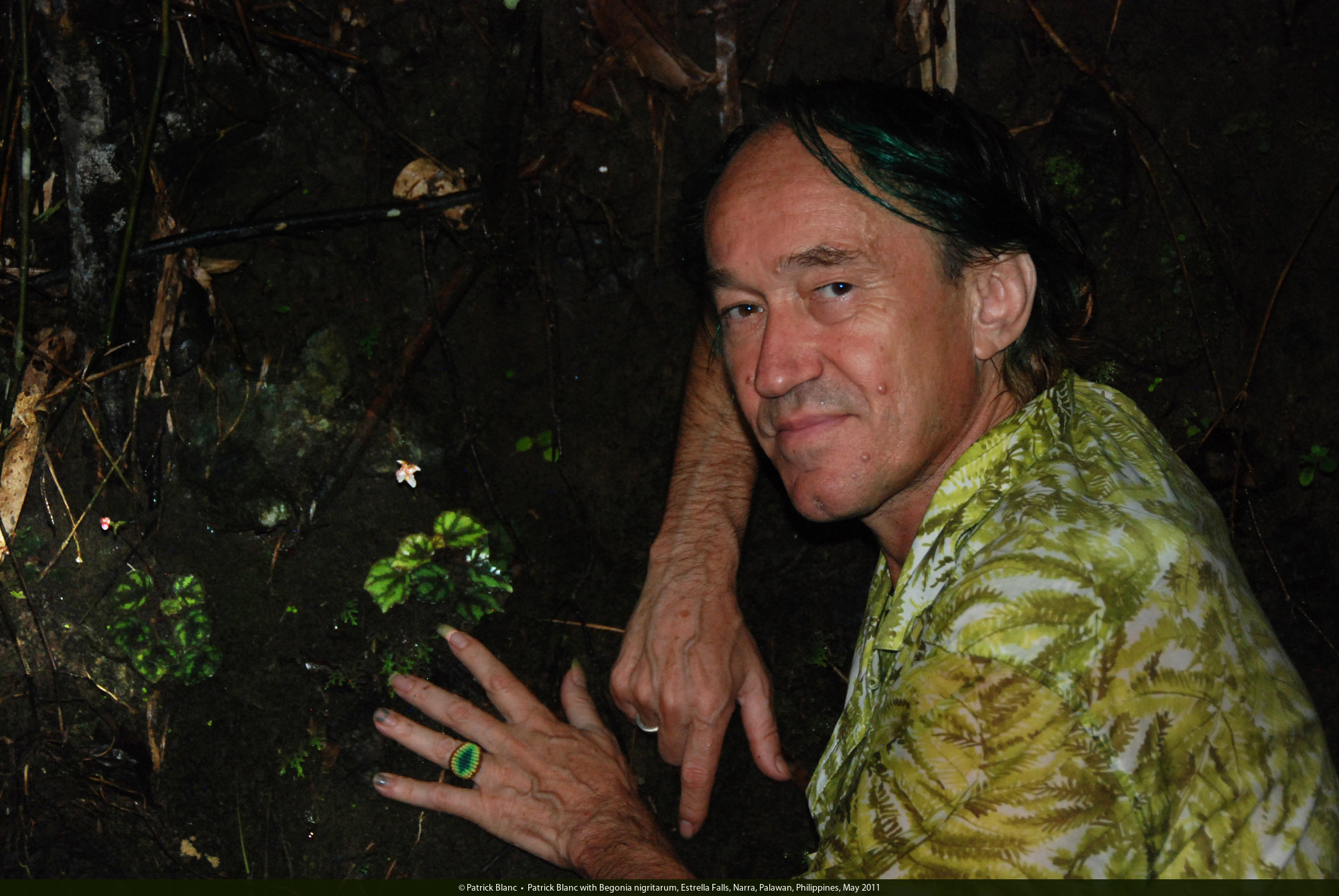 Patrick Blanc with Begonia nigritarum, Estrella Falls, Narra, Palawan, Philippines, May 2011
