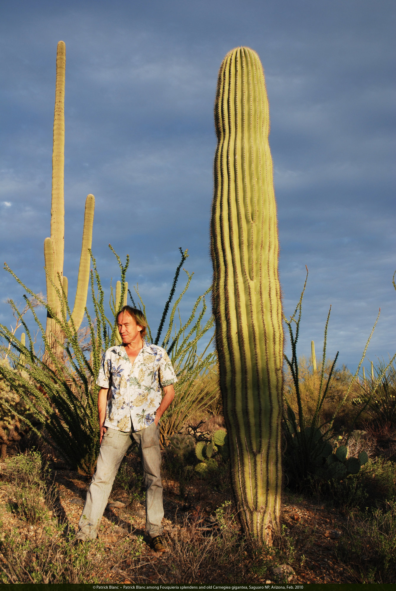 Patrick Blanc among Fouquieria splendens and Carnegiea gigantea, Saguaro NP, Arizona, Feb. 2010