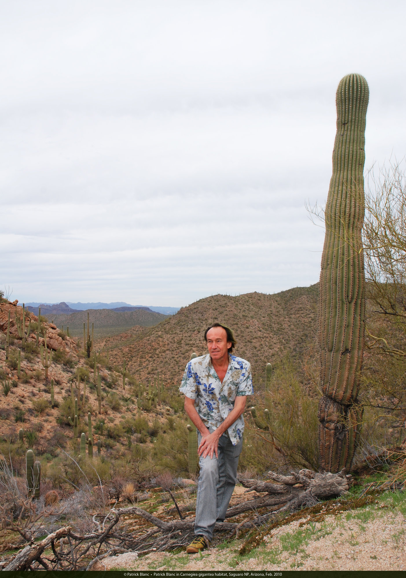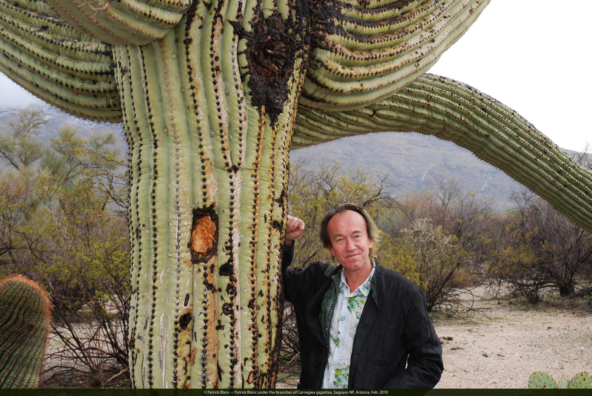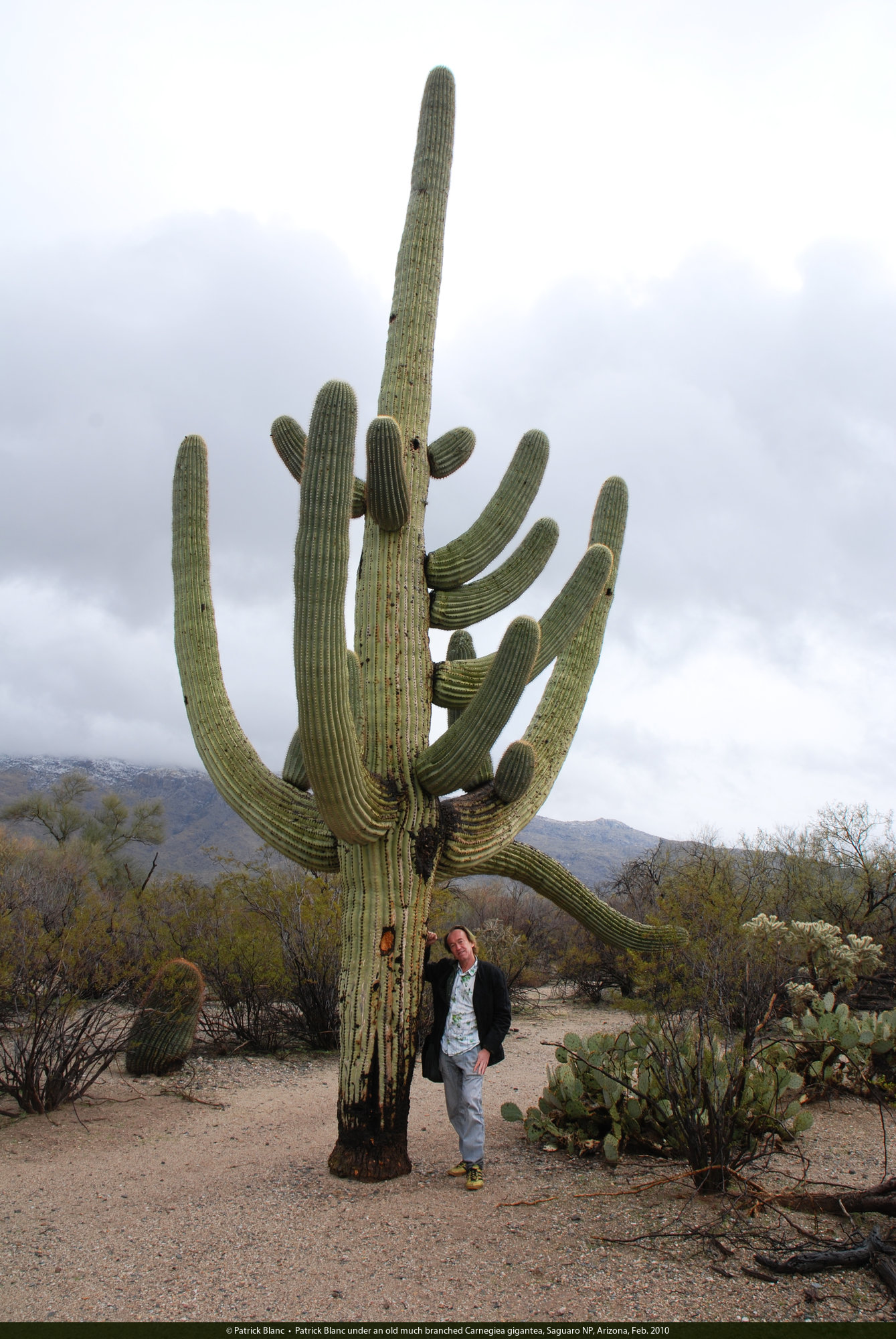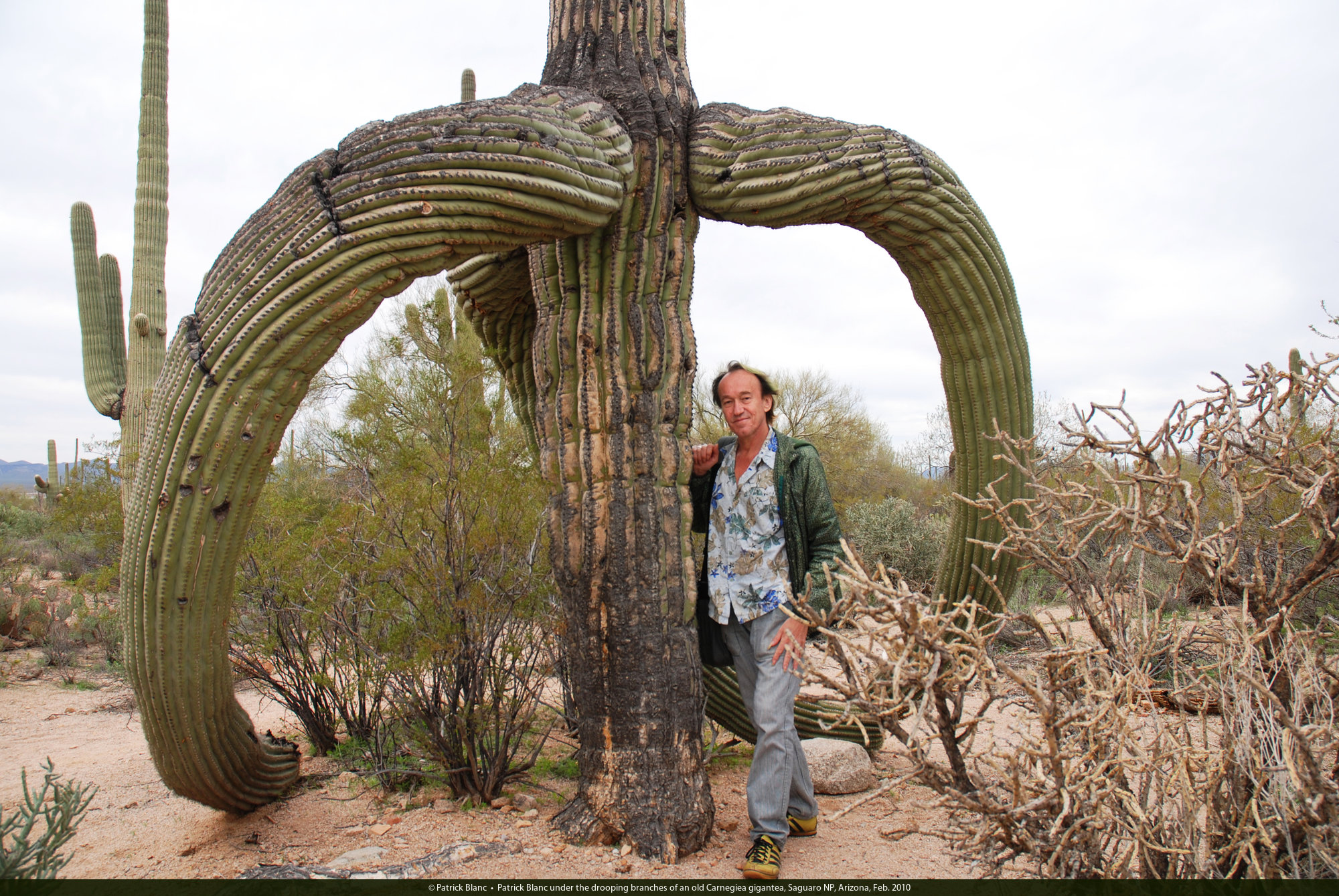 Patrick Blanc under an old much branched Carnegiea gigantea, Saguaro NP, Arizona, Feb. 2010