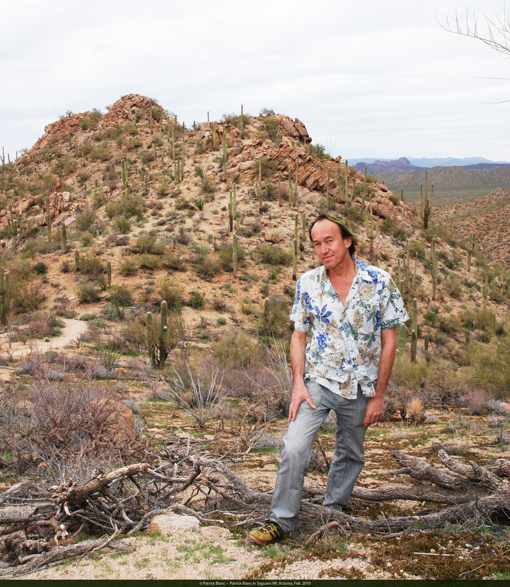 Patrick Blanc in Carnegiea gigantea habitat, Saguaro NP, Arizona, Feb. 2010