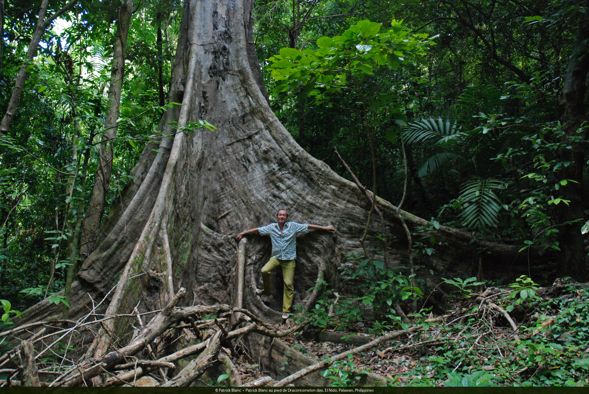 Patrick Blanc au pied de Dracontomelon dao, El Nido, Palawan, Philippines, Feb. 2009