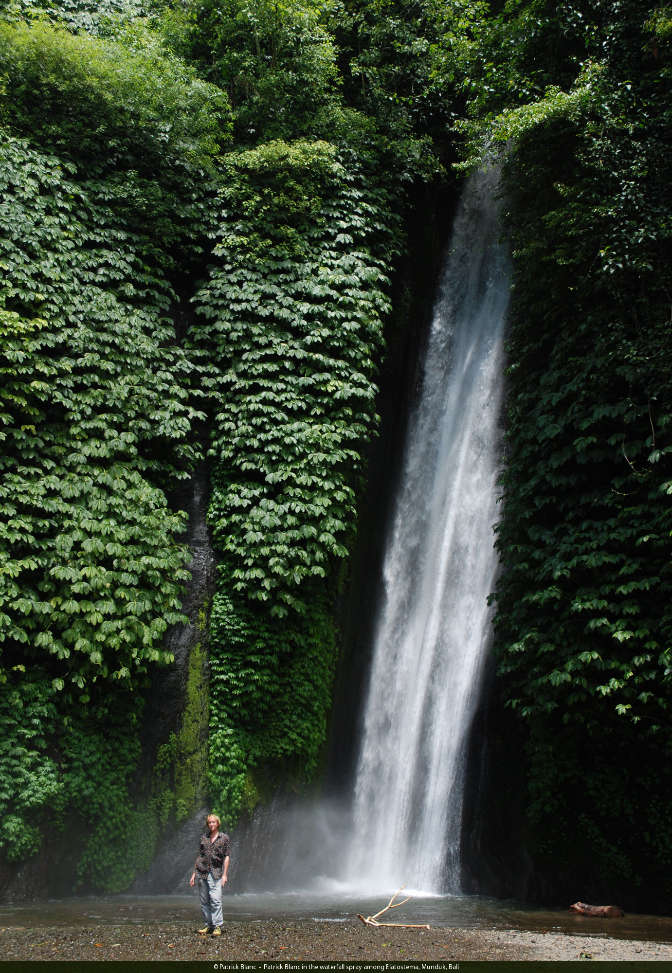 Patrick Blanc and Elatostema macrophyllum (syn. E. paludosum) along a vertical seeping cliff, Gitgit, Bali, Feb. 2010
