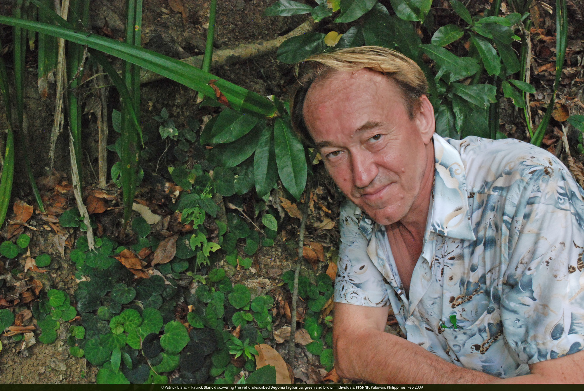 Patrick Blanc discovering the yet undescribed Begonia tagbanua, green and brown individuals, PPSRNP, Palawan, Philippines, Feb 2009