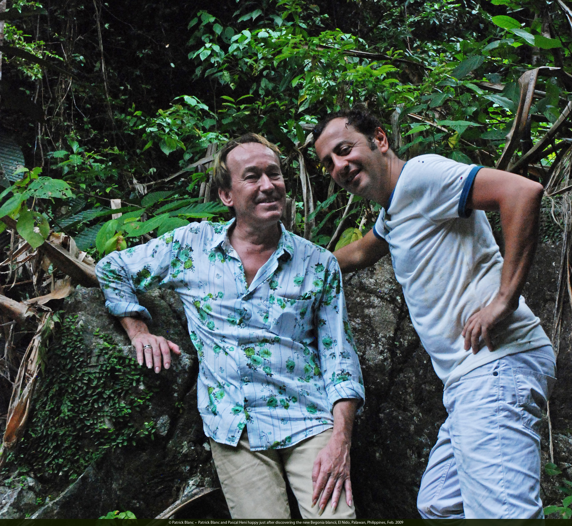Patrick Blanc and Pascal Heni happy just after discovering the new Begonia blancii, El Nido, Palawan, Philippines, Feb. 2009