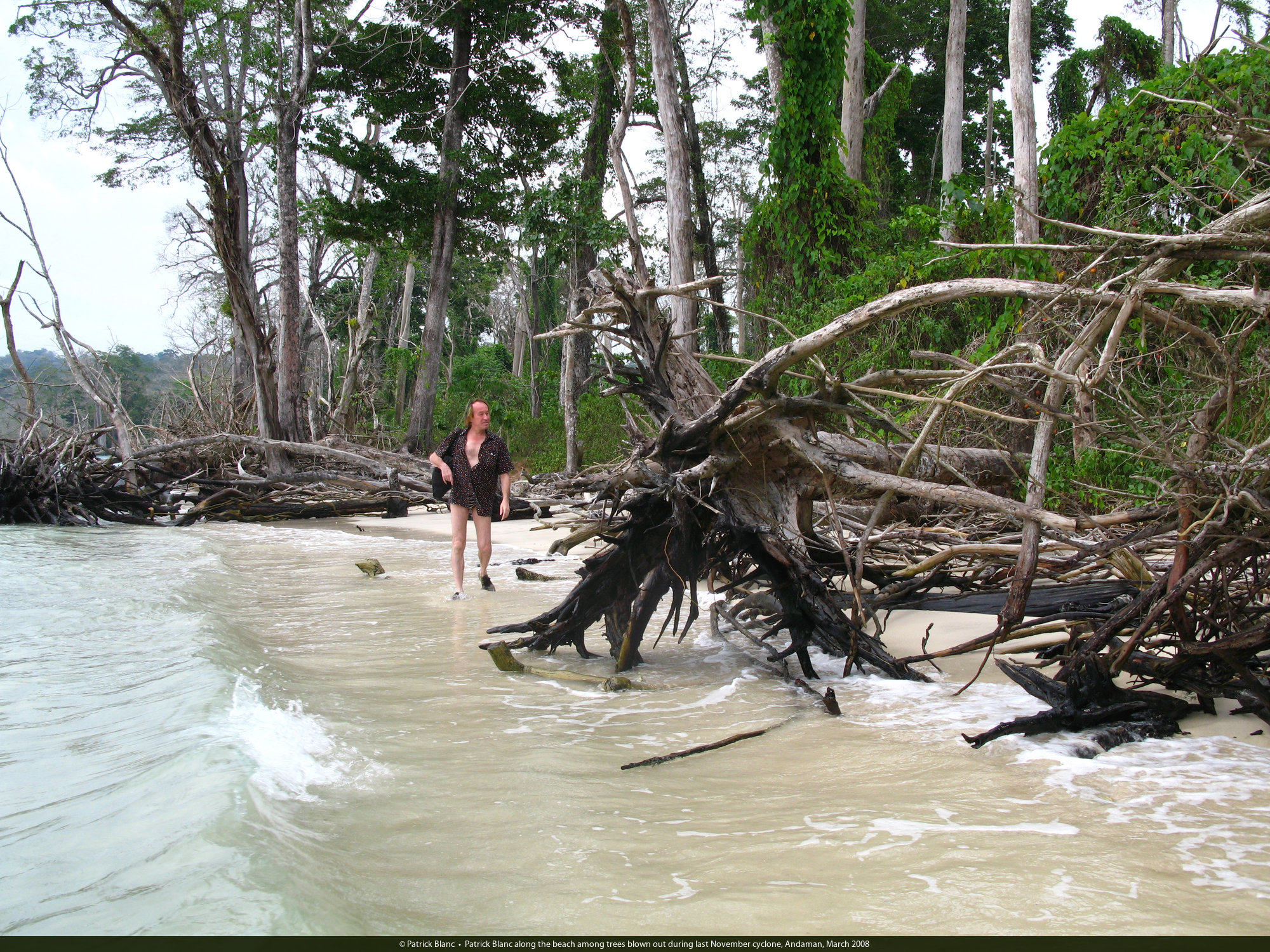 Patrick Blanc along the beach among trees blown out during last November cyclone, Andaman, March 2008