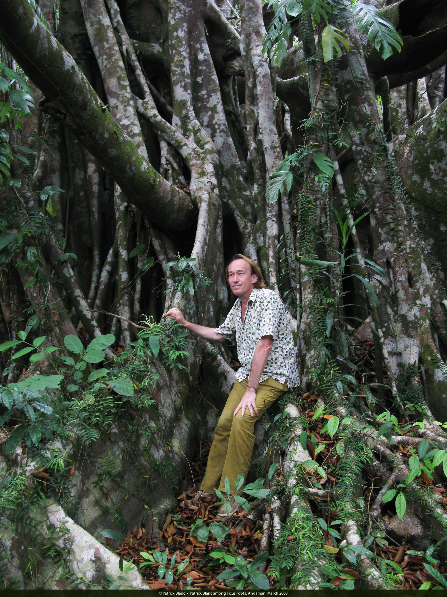 Patrick Blanc among Ficus roots, Andaman, March 2008