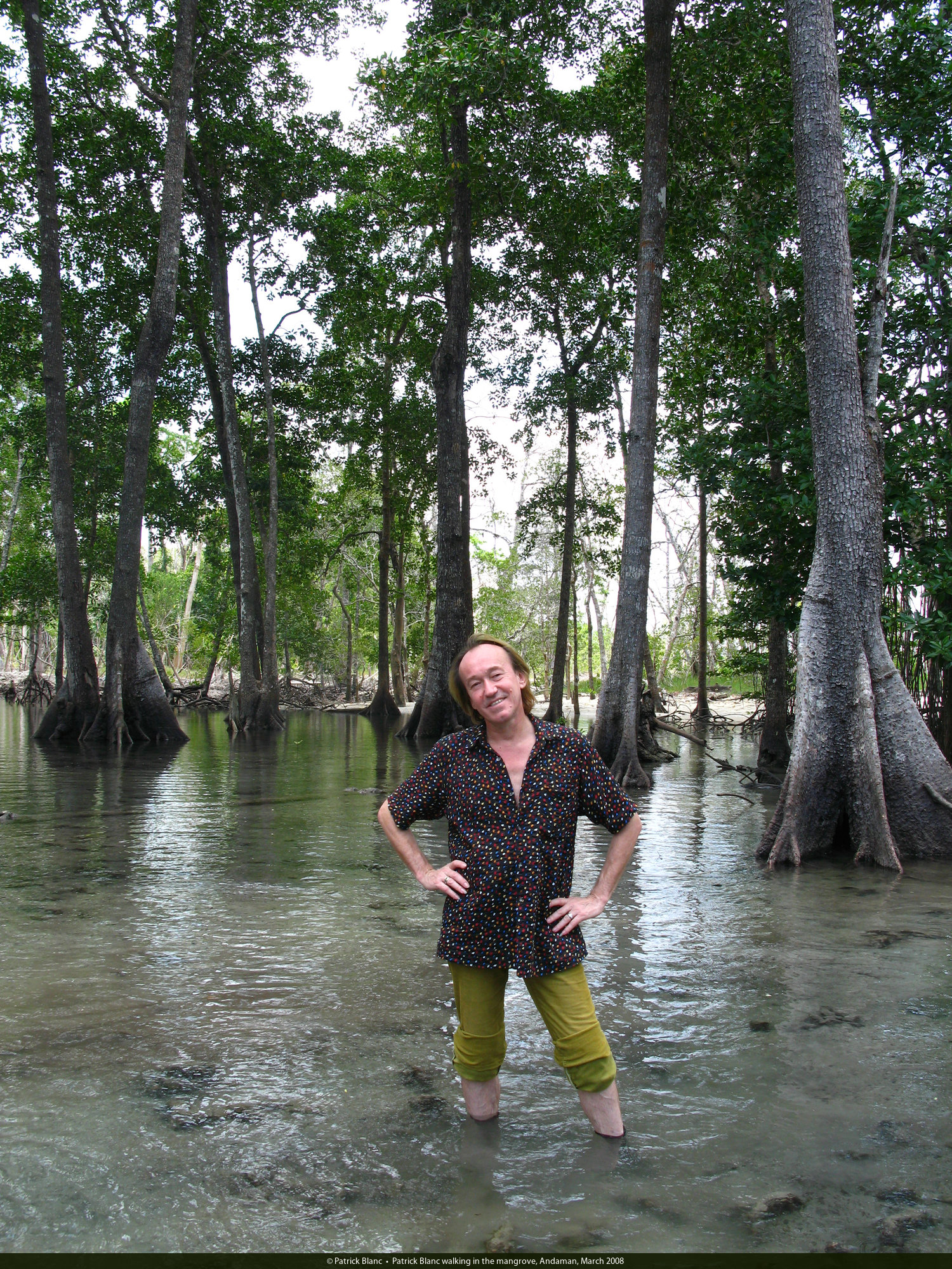Patrick Blanc among mangrove dead trees, Andaman, March 2008
