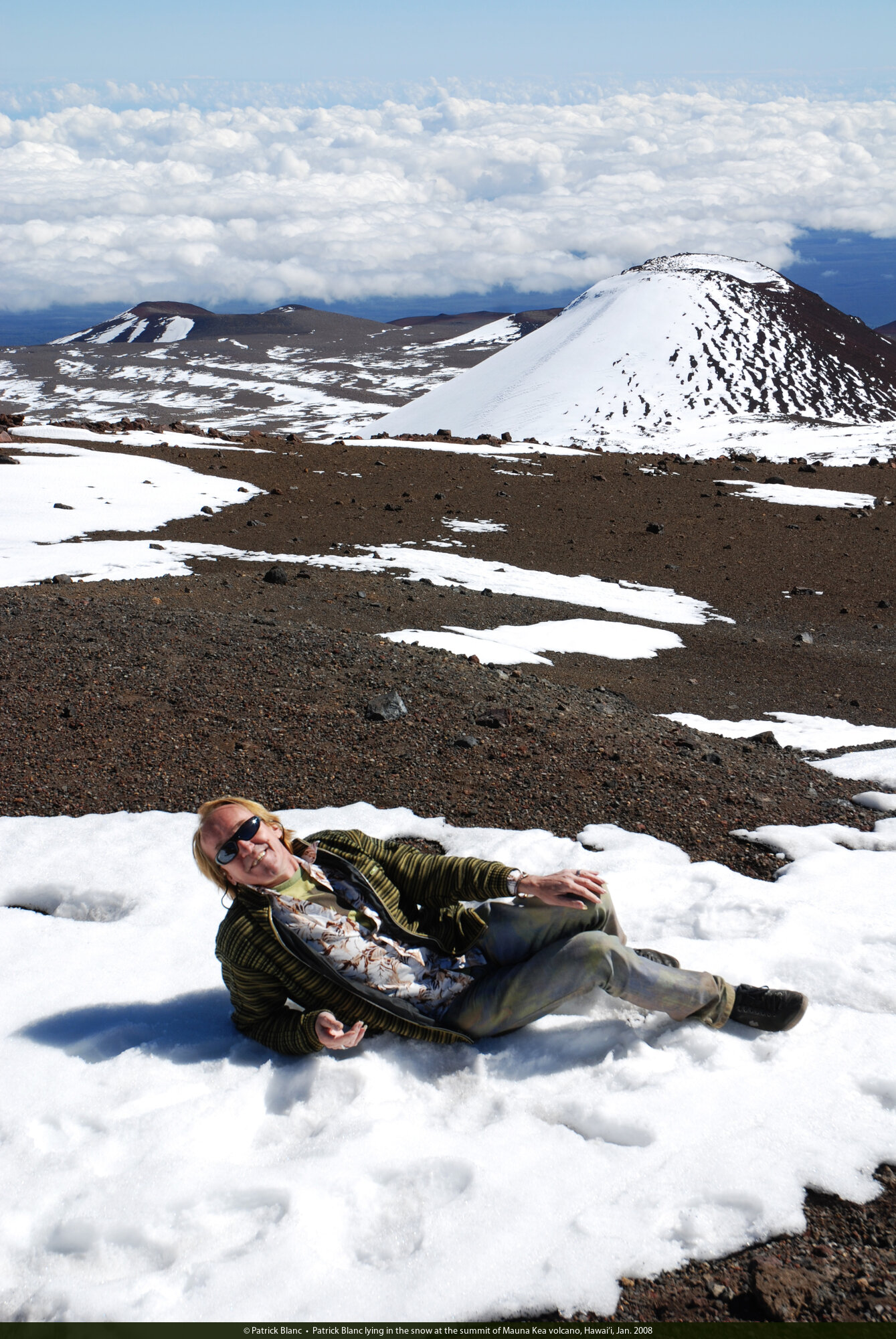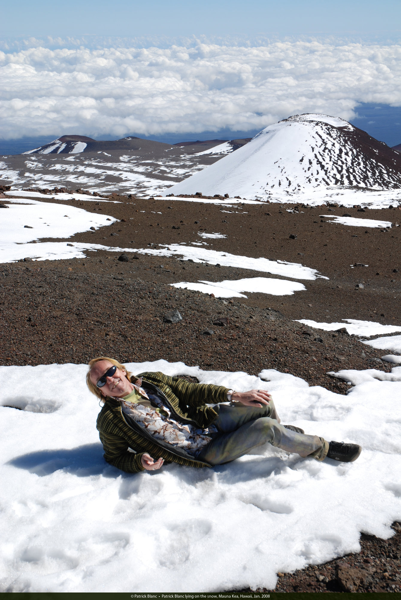 Patrick Blanc lying on the snow, Mauna Kea, Hawaii, Jan. 2008
