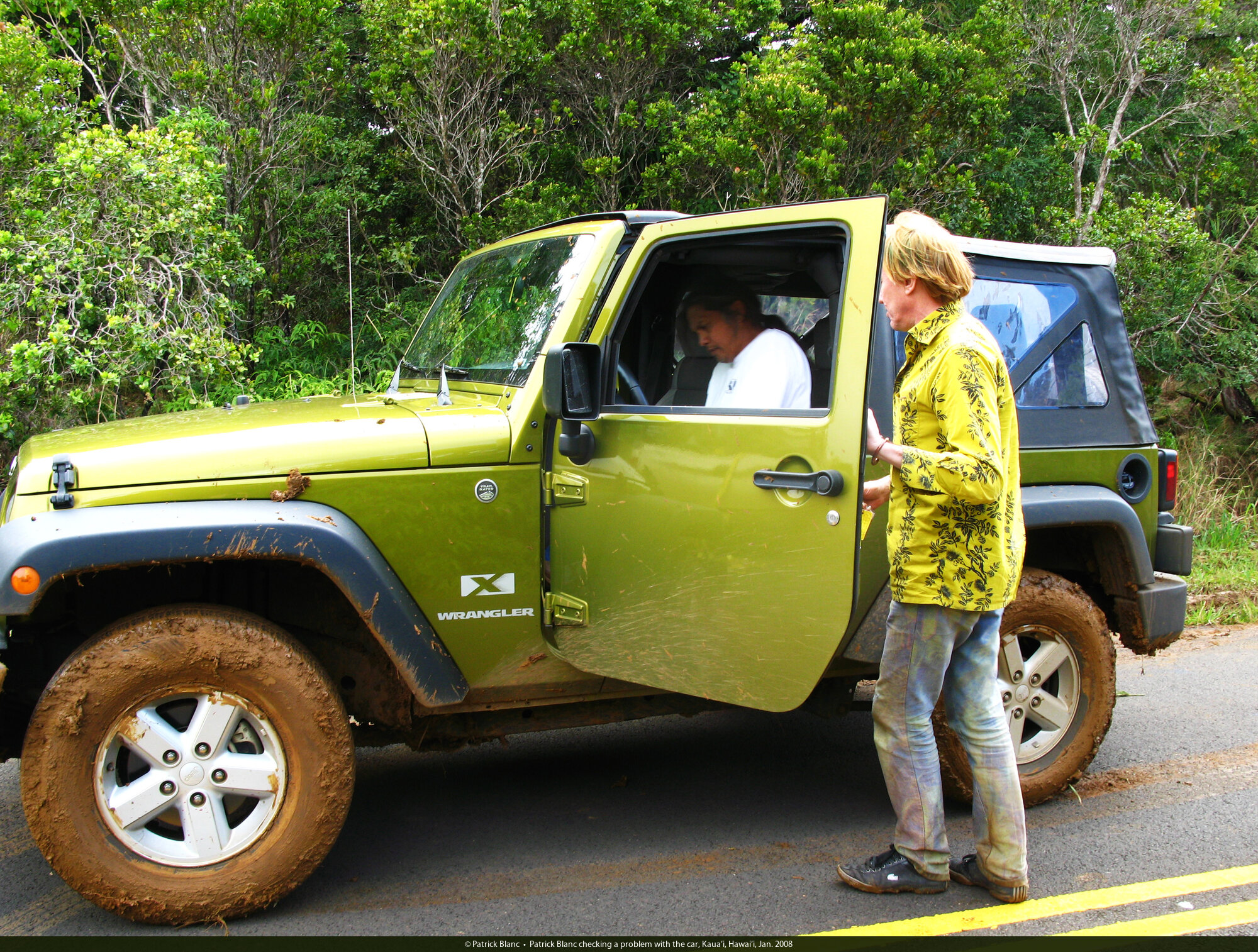 Patrick Blanc checking a problem with the car, Kaua'i, Hawai'i, Jan. 2008