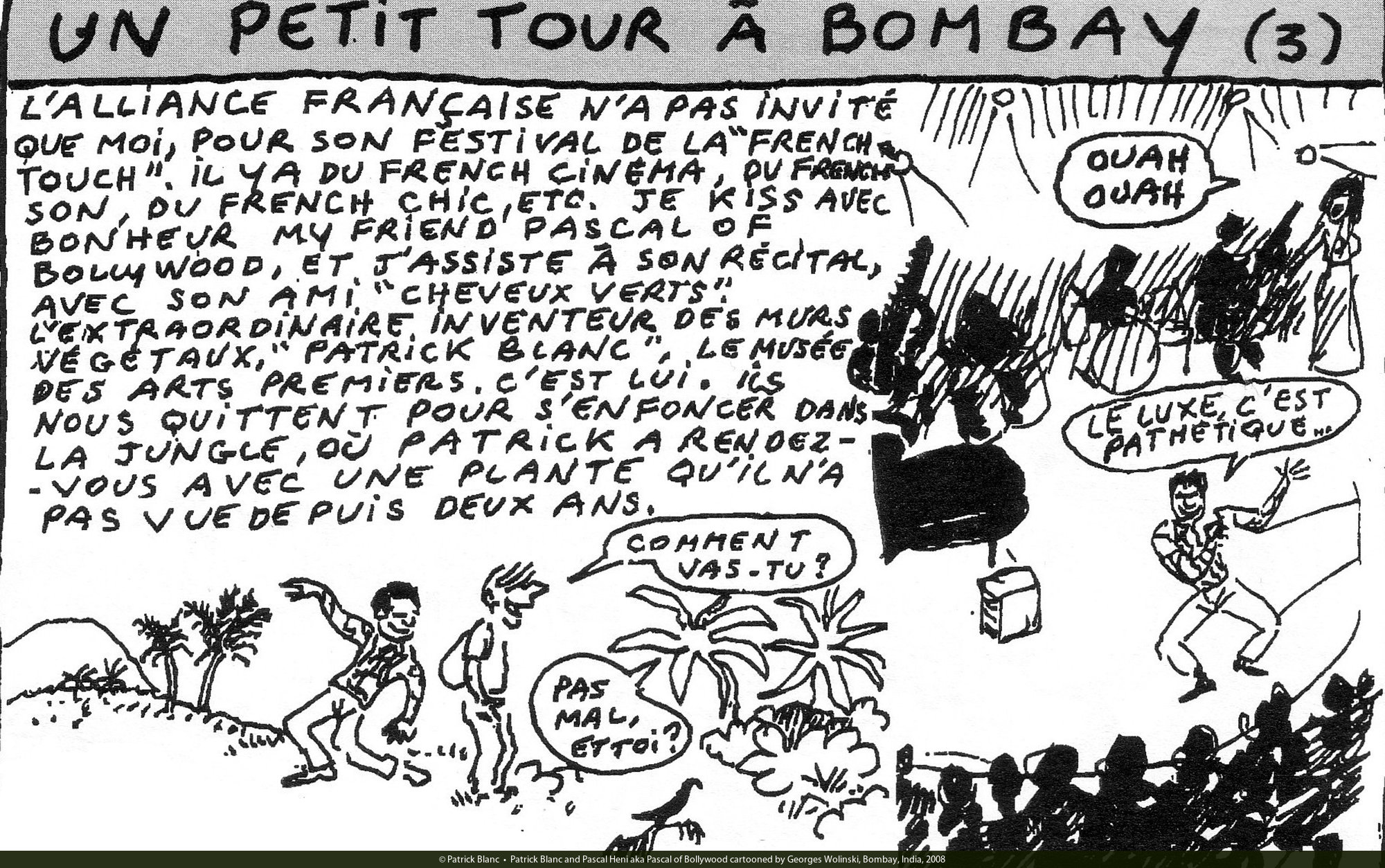 Patrick Blanc and Pascal Heni aka Pascal of Bollywood cartooned by Georges Wolinski, Bombay, India, March 2008