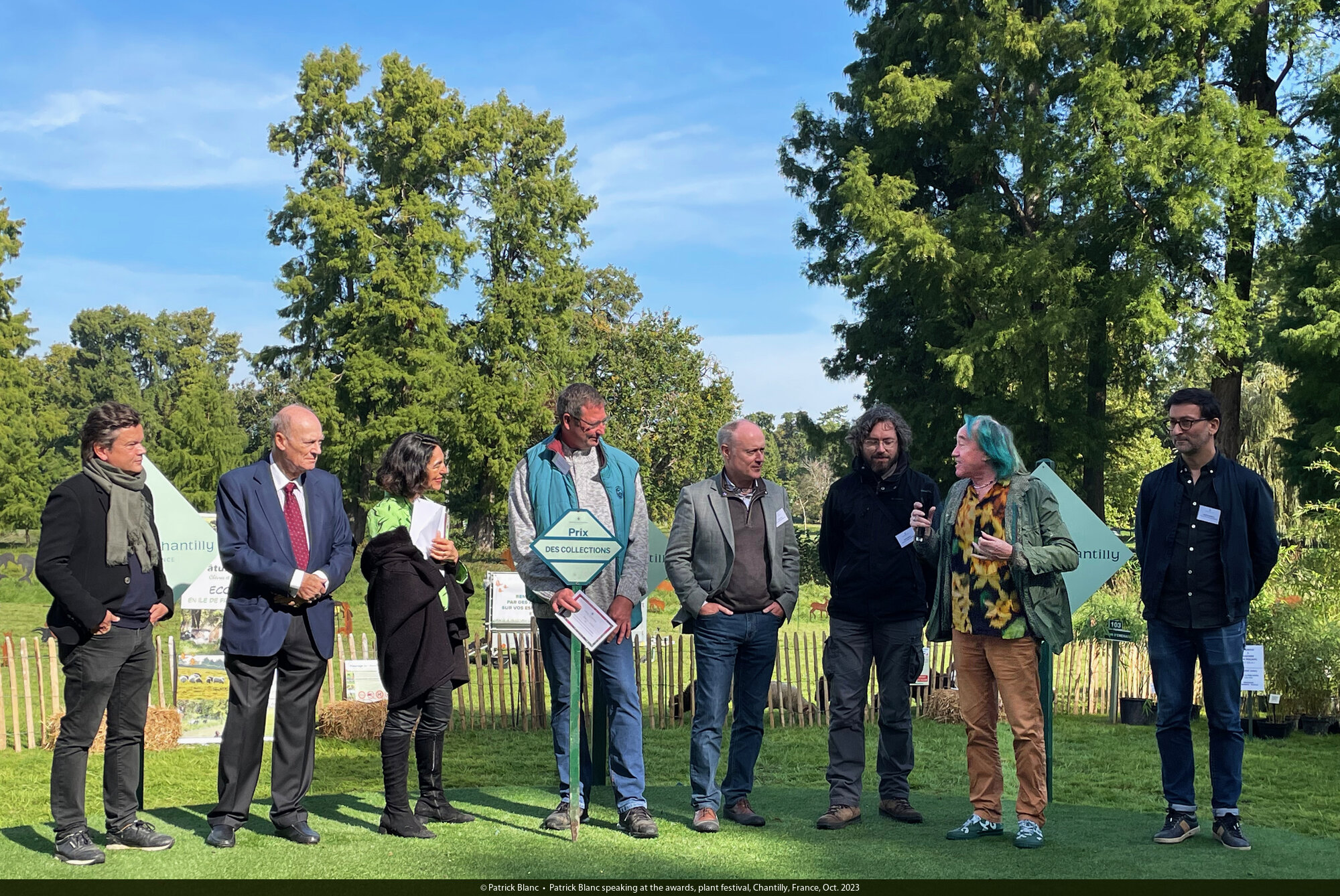 Patrick Blanc speaking at the awards, plant festival, Chantilly, France, Oct. 2023
