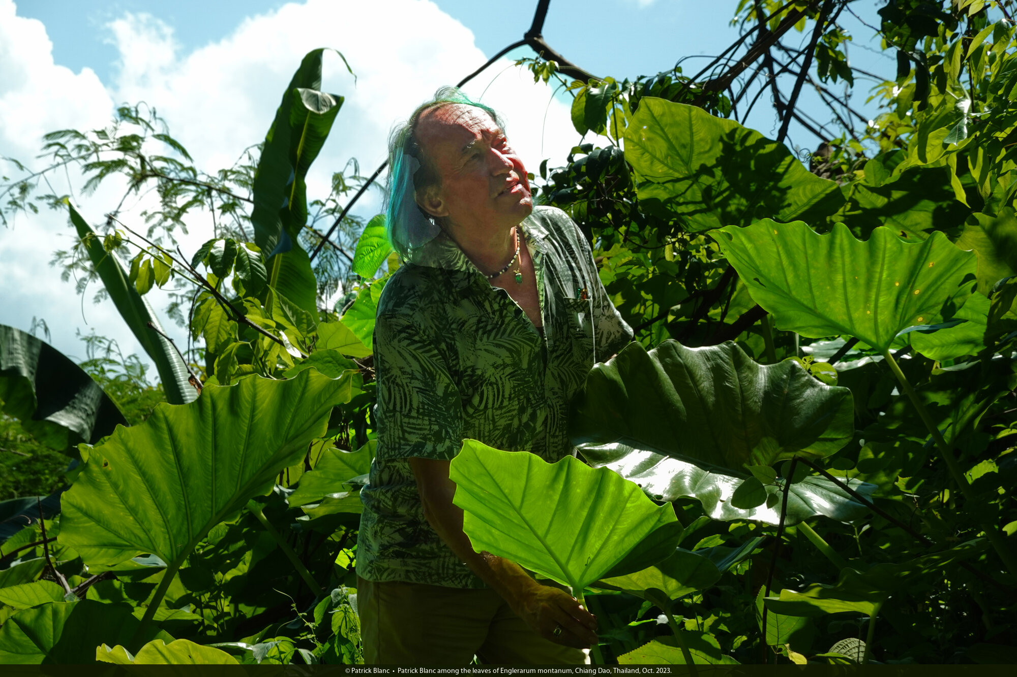 Patrick Blanc among the leaves of Englerarum montanum, Chiang Dao, Thailand, Oct. 2023.