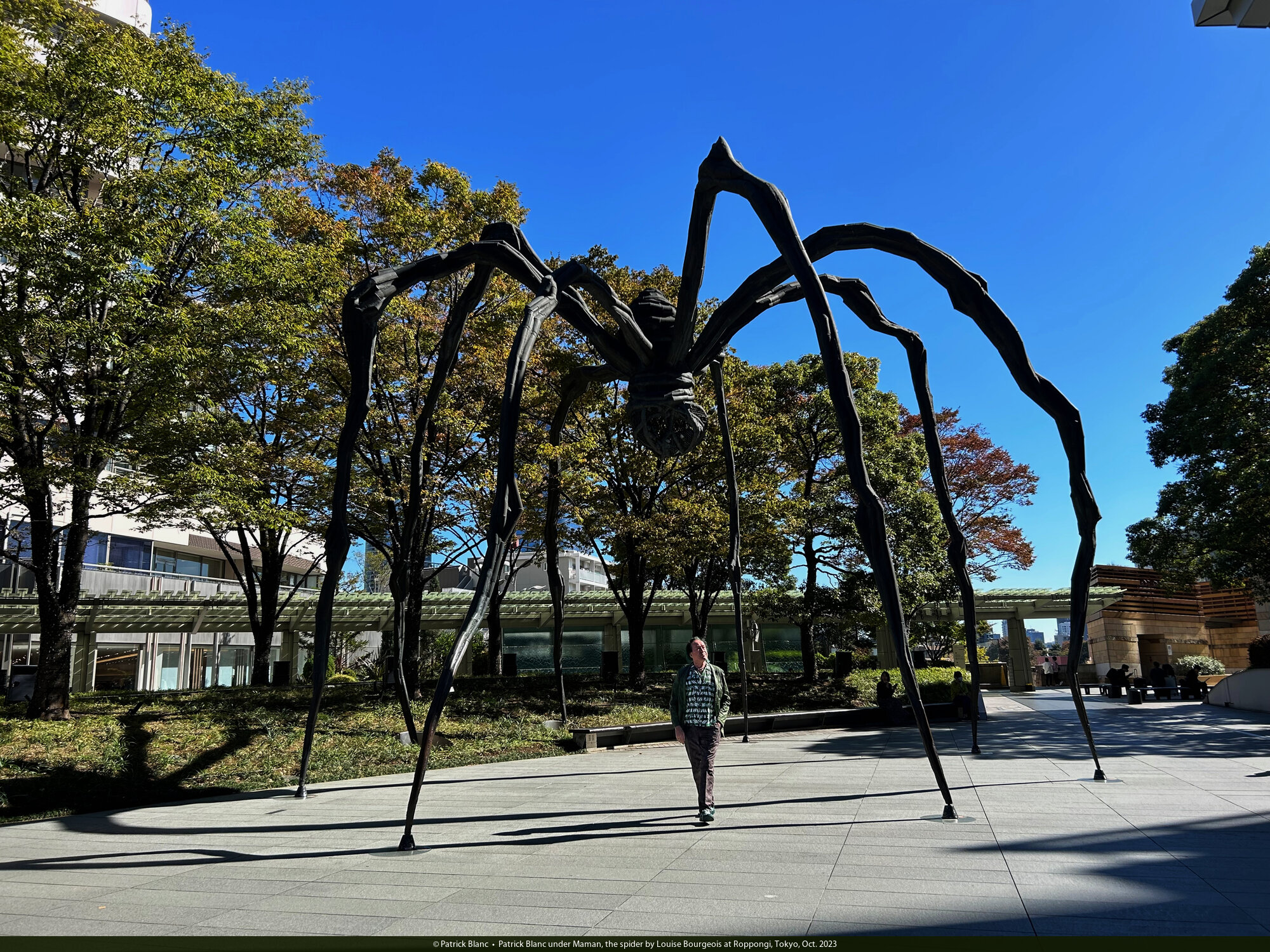 Patrick Blanc under Maman, the spider by Louise Bourgeois at Roppongi, Tokyo, Oct. 2023
