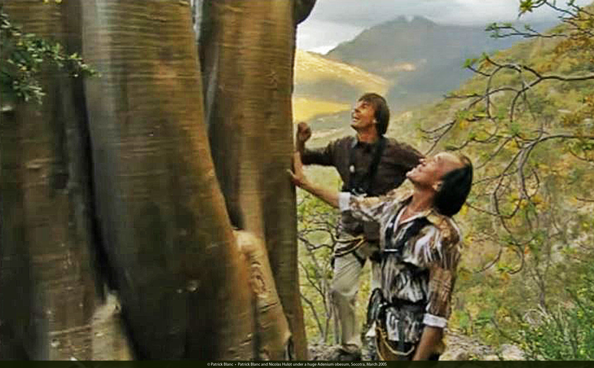 Patrick Blanc and Nicolas Hulot under a huge Adenium obesum, Socotra, March 2005