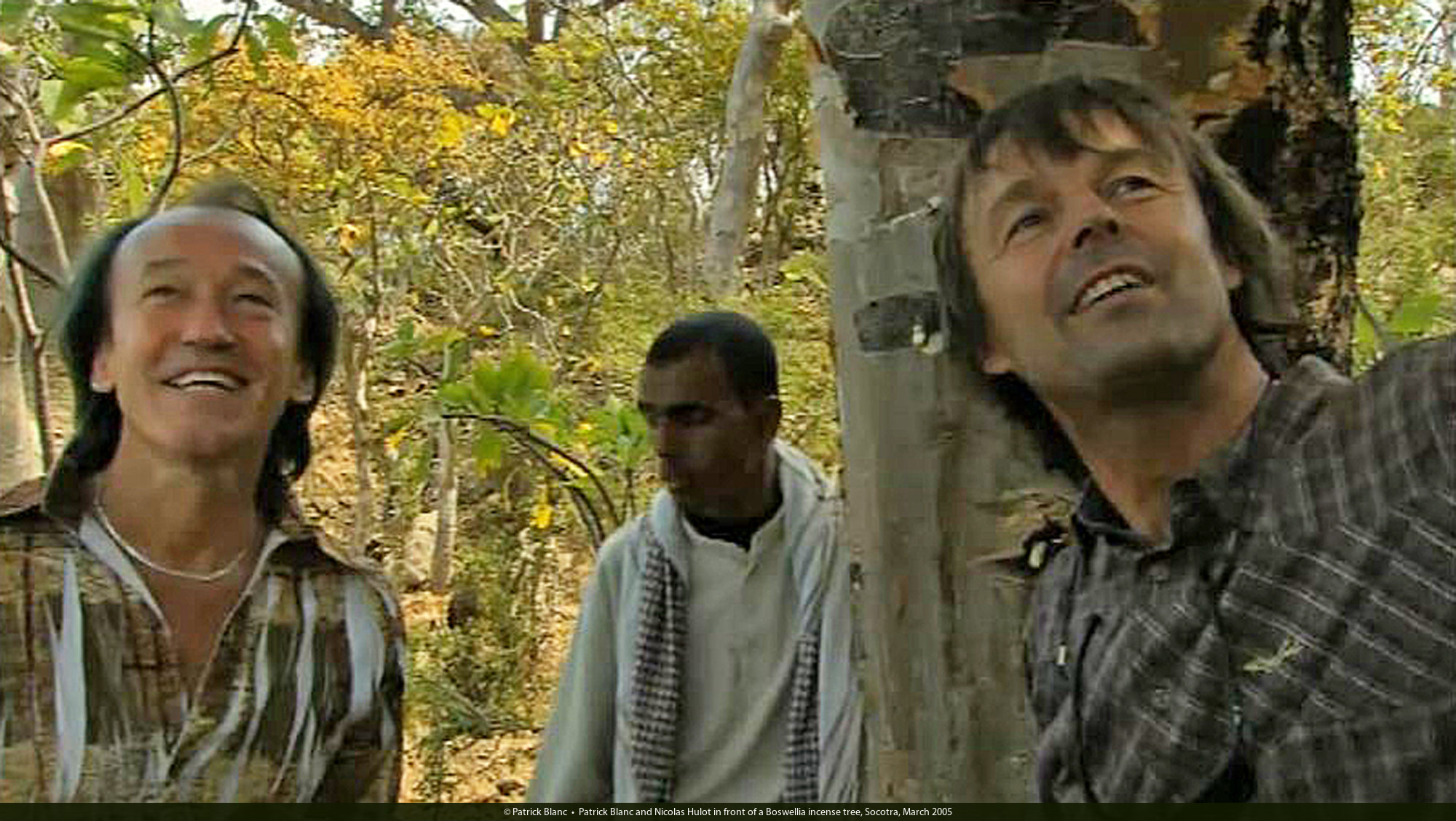 Patrick Blanc and Nicolas Hulot in front of a Boswellia incense tree, Socotra, March 2005