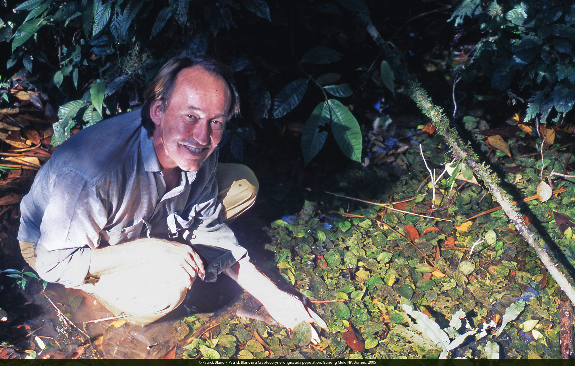 Patrick Blanc in a Cryptocoryne longicauda population, Gunung Mulu NP, Borneo, July 2005