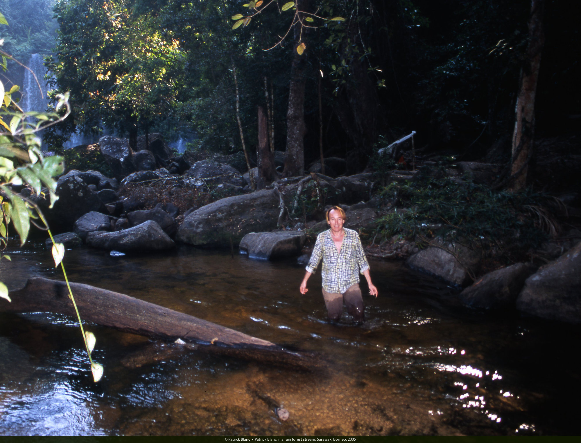 Patrick Blanc in a rain forest stream, Sarawak, Borneo, July 2005