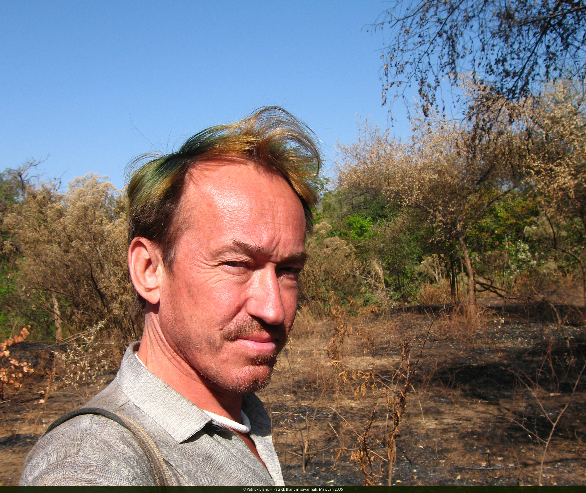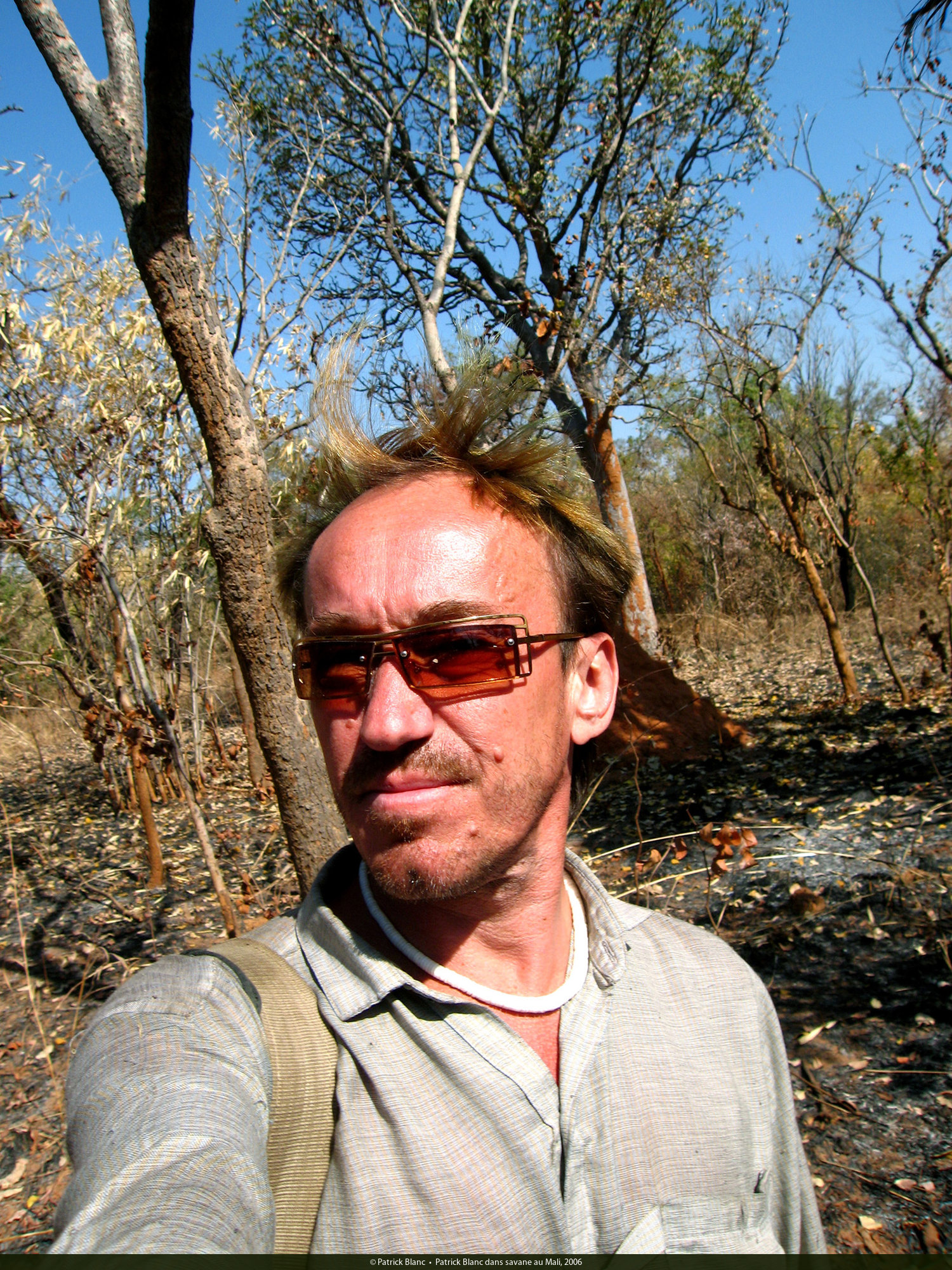 Patrick Blanc dans savane au Mali, Jan. 2006