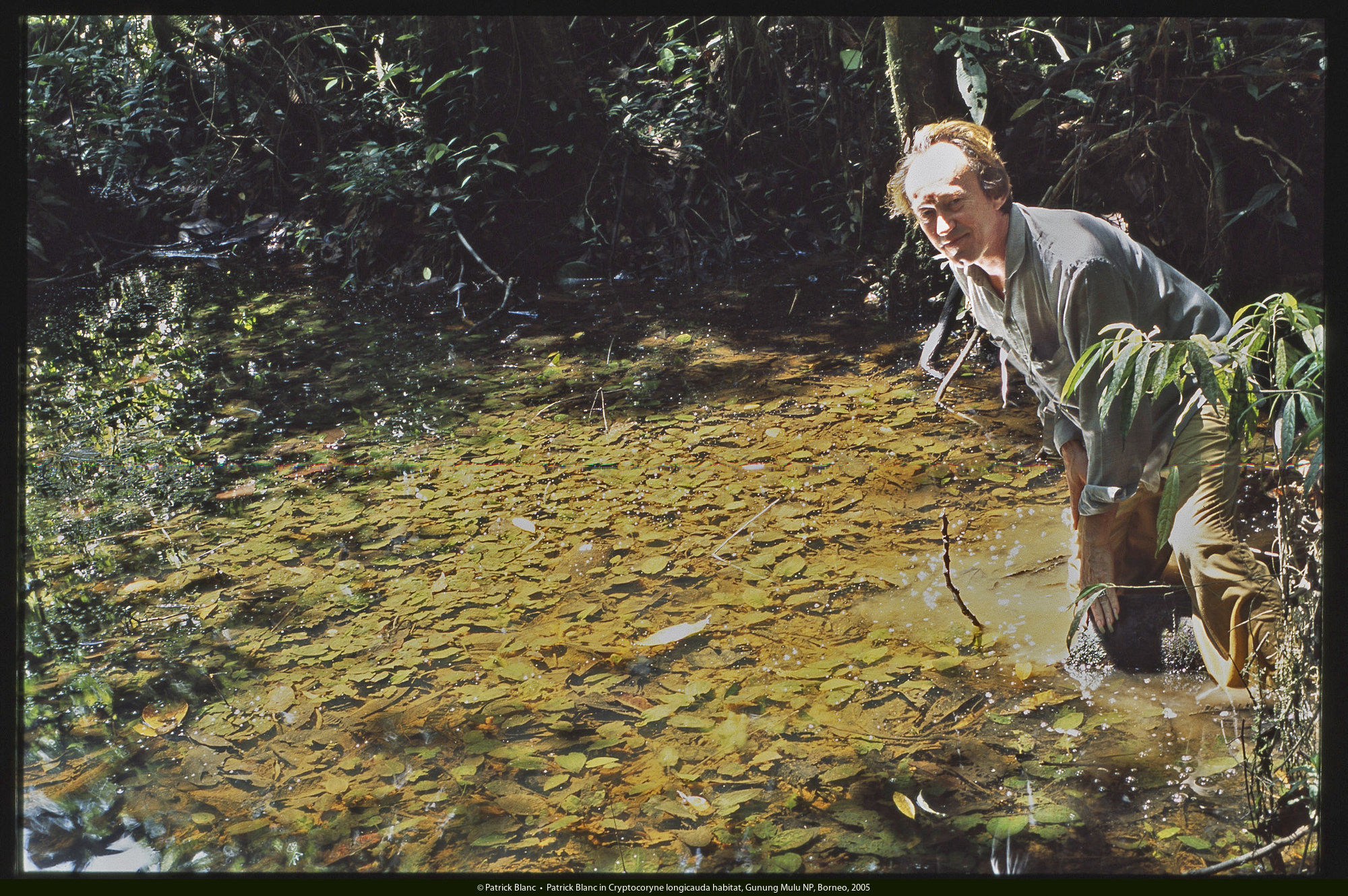 Patrick Blanc in Cryptocoryne longicauda habitat, Gunung Mulu NP, Borneo, July 2005