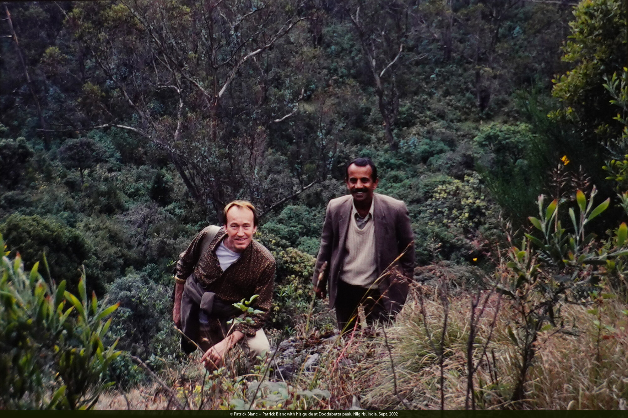 Patrick Blanc with his guide at Doddabetta peak, Nilgiris, India, Sept. 2002