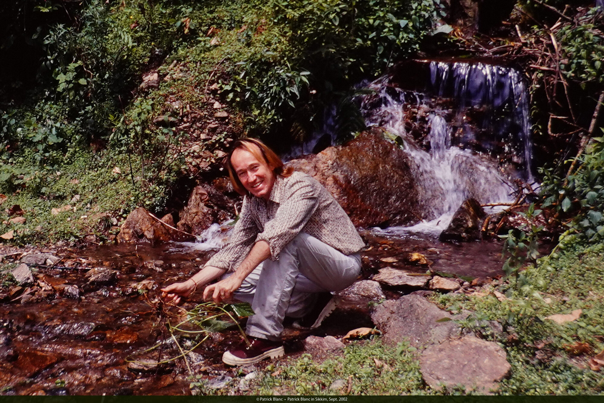 Patrick Blanc in a waterfall, Sikkim, Sept. 2002