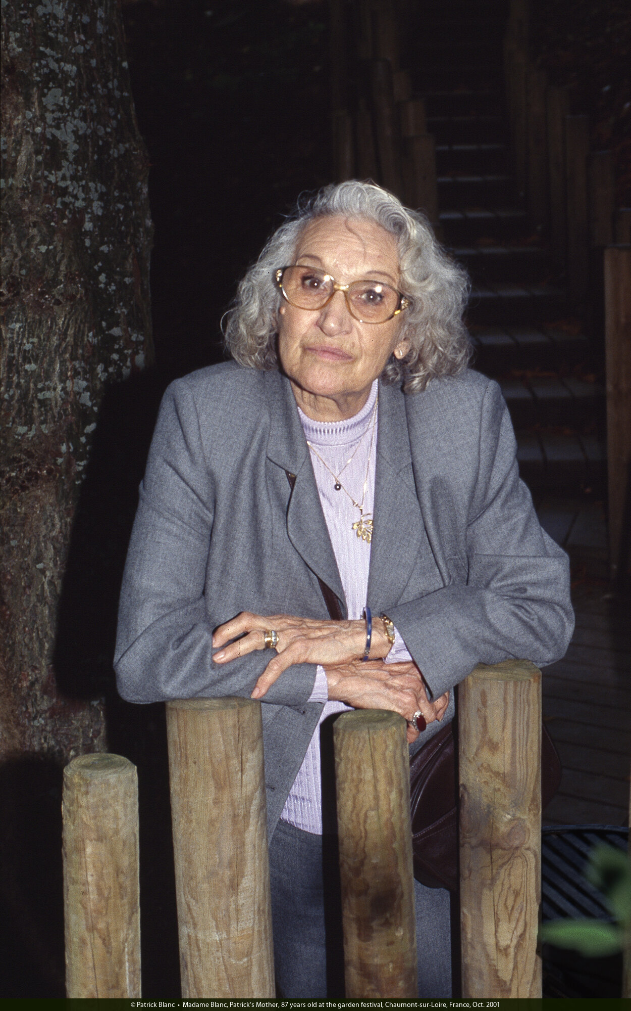Madame Blanc, Patrick's Mother, 87 years old at the garden festival, Chaumont-sur-Loire, France, Oct. 2001