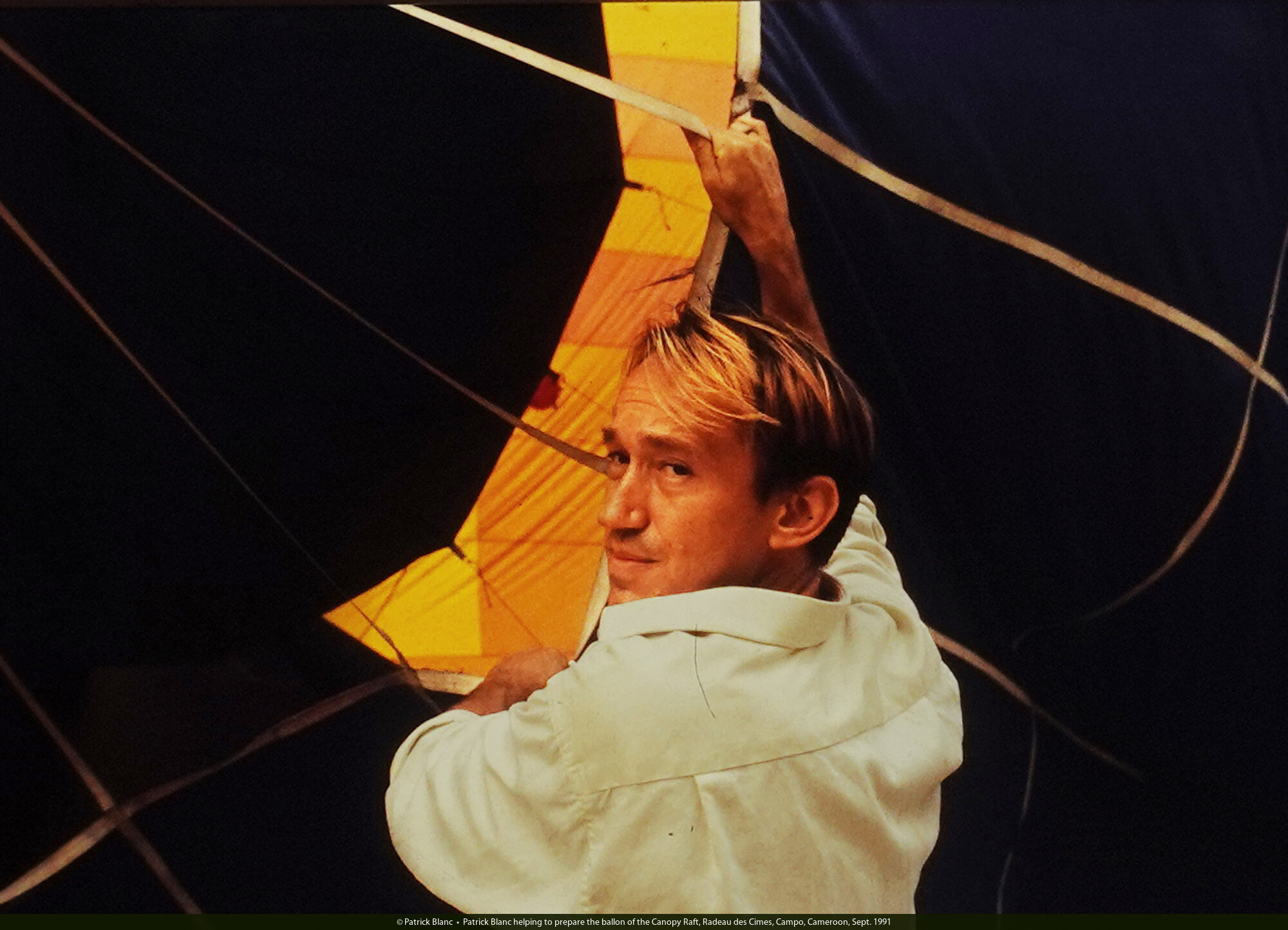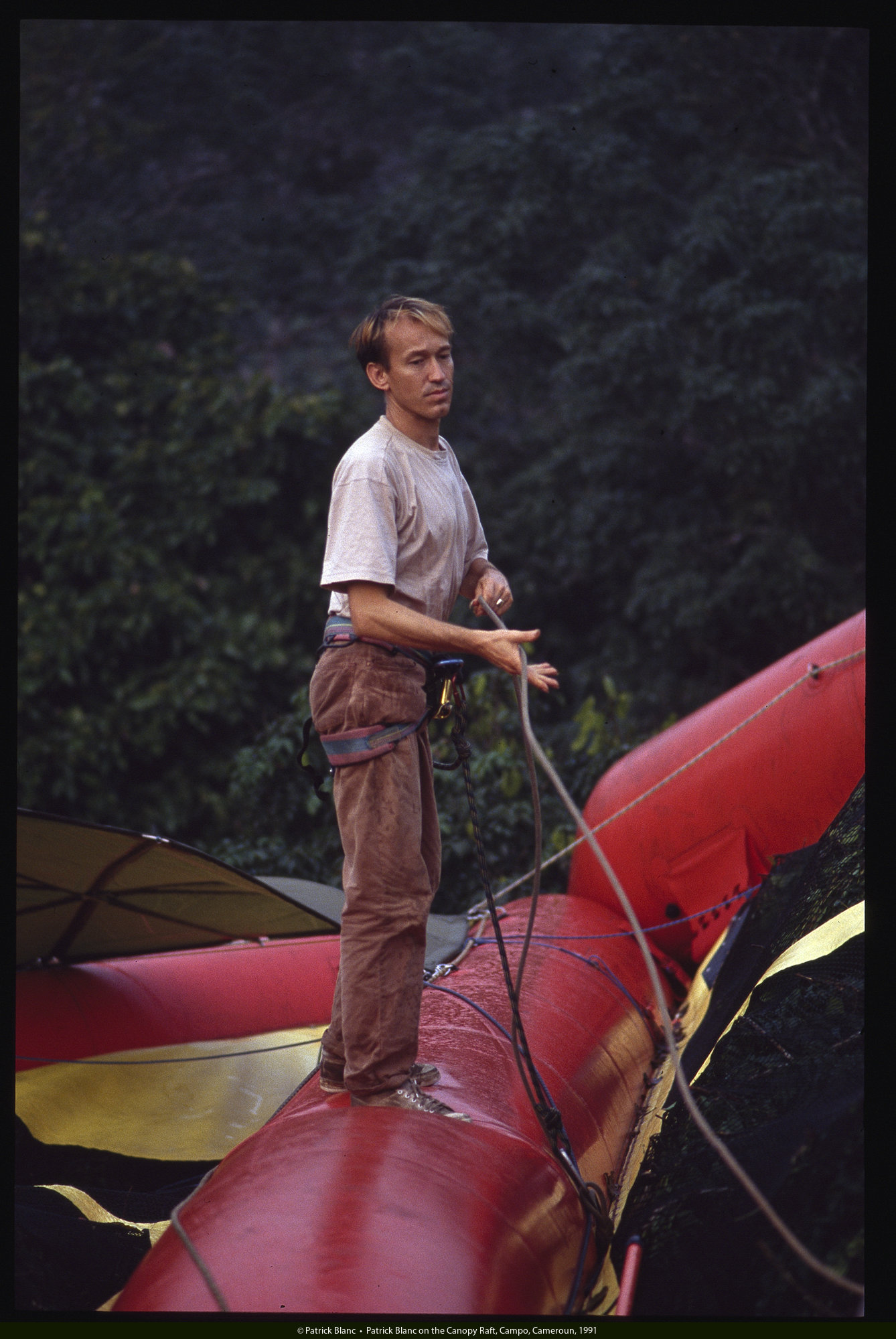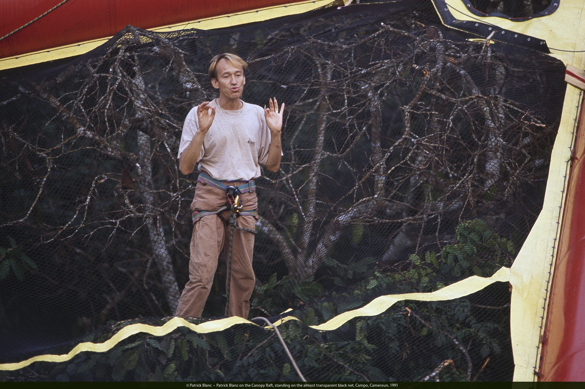 Patrick Blanc on the Radeau des Cimes, Canopy Raft, Campo, Cameroun, 1991