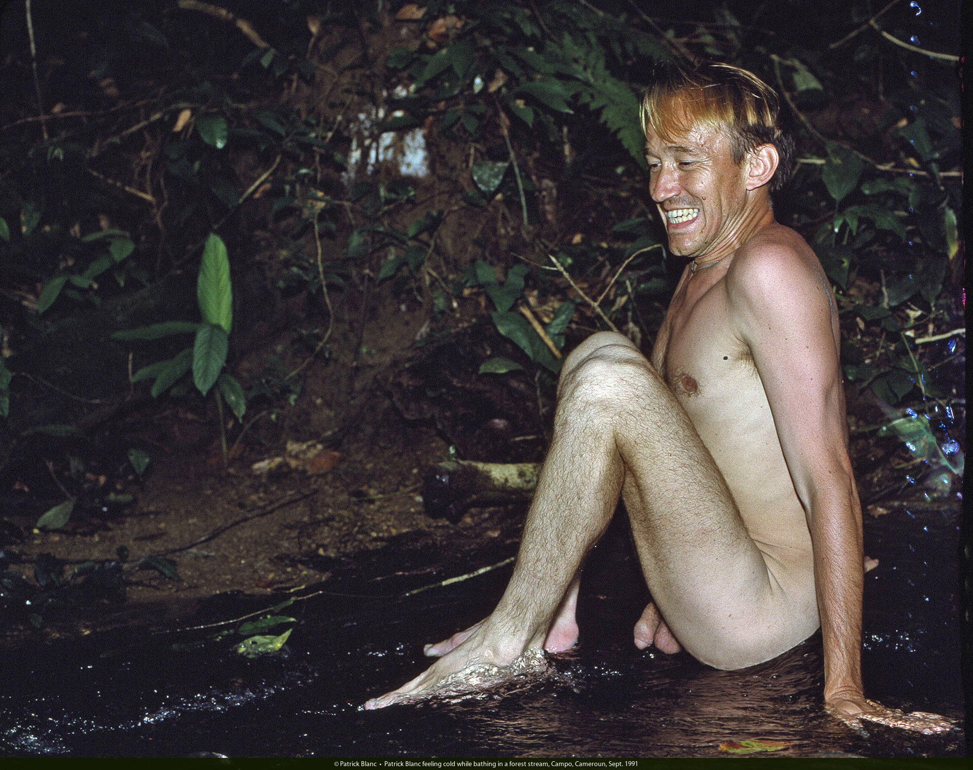Patrick Blanc feeling cold while bathing in a forest stream, Campo, Cameroun, Sept. 1991
