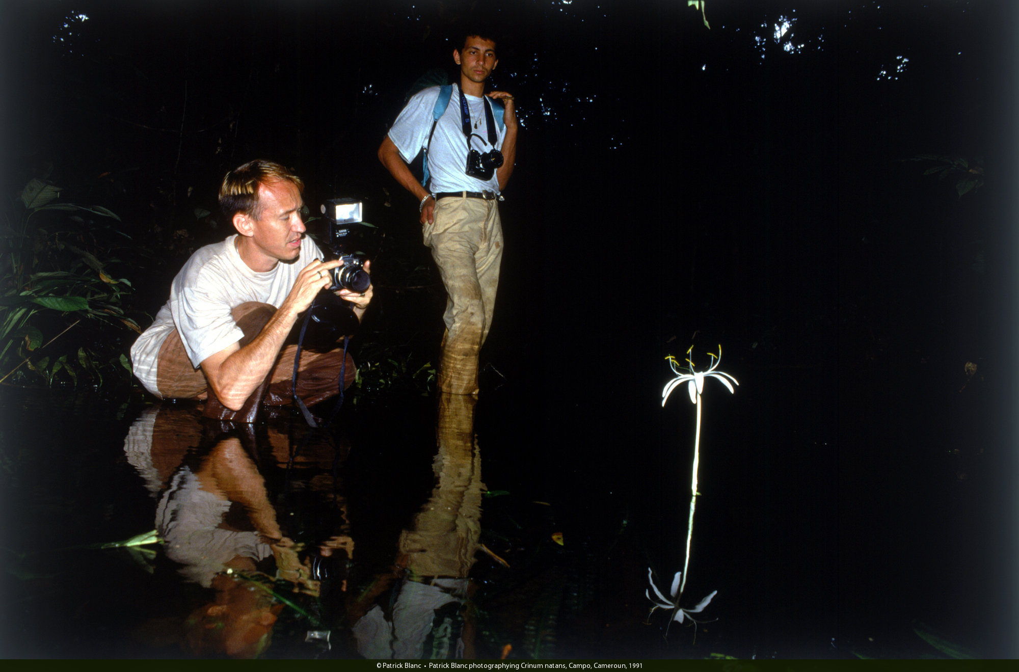 Patrick Blanc photographying Crinum natans, Campo, Cameroun, 1991