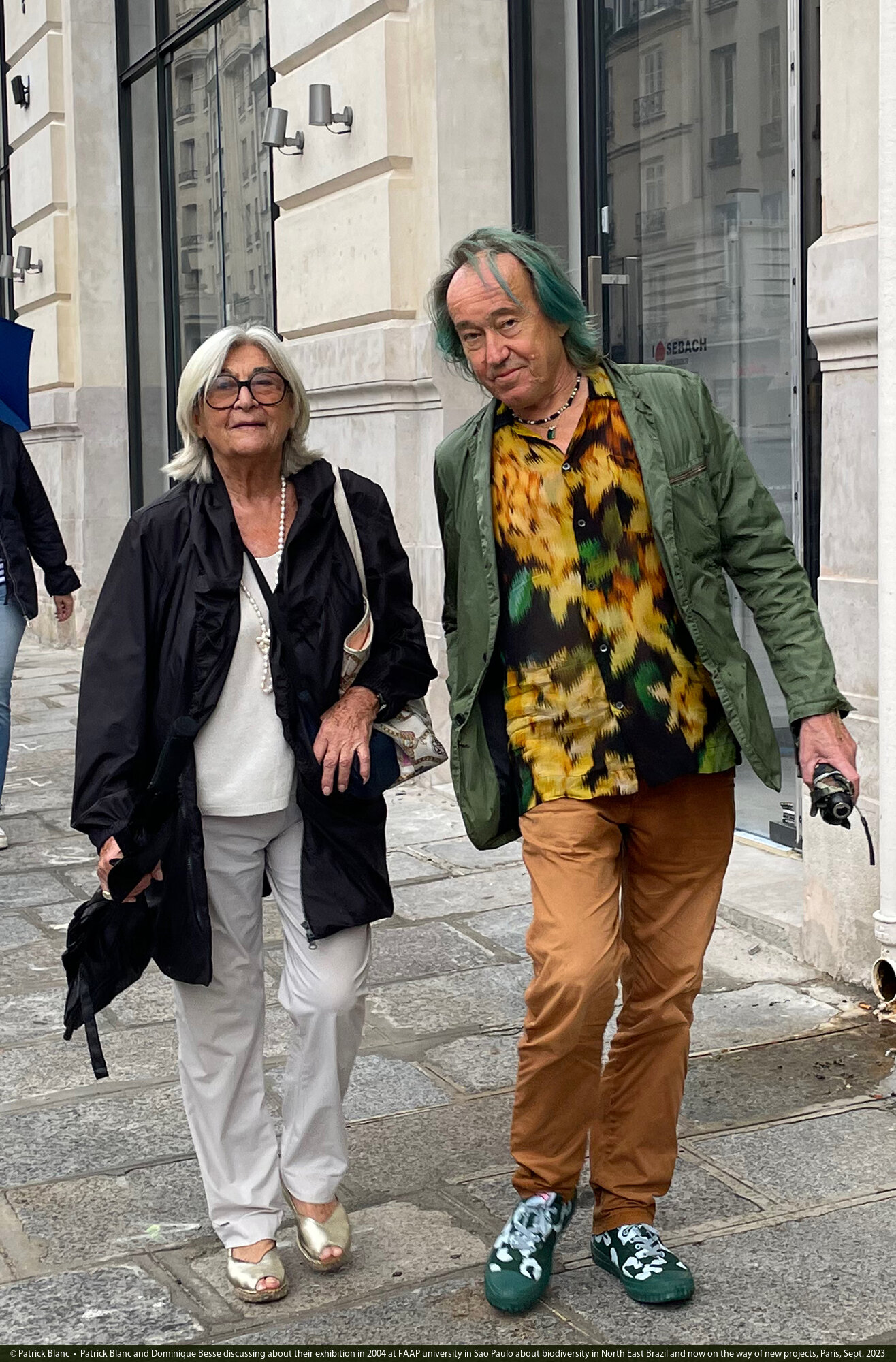 Patrick Blanc and Dominique Besse discussing about their exhibition in 2004 at FAAP university in Sao Paulo about biodiversity in North East Brazil and now on the way of new projects, Paris, Sept. 2023