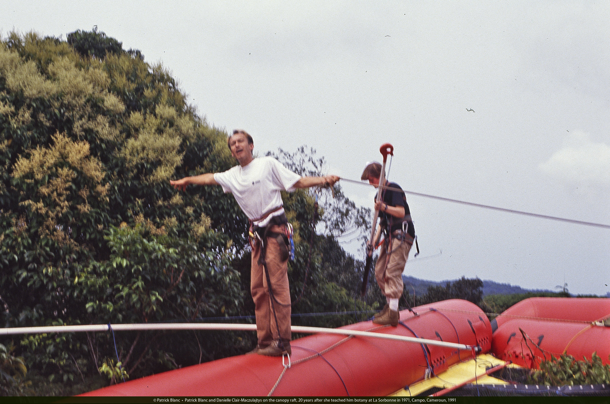 Patrick Blanc on the Radeau des Cimes, Canopy Raft, Campo, Cameroun, 1991
