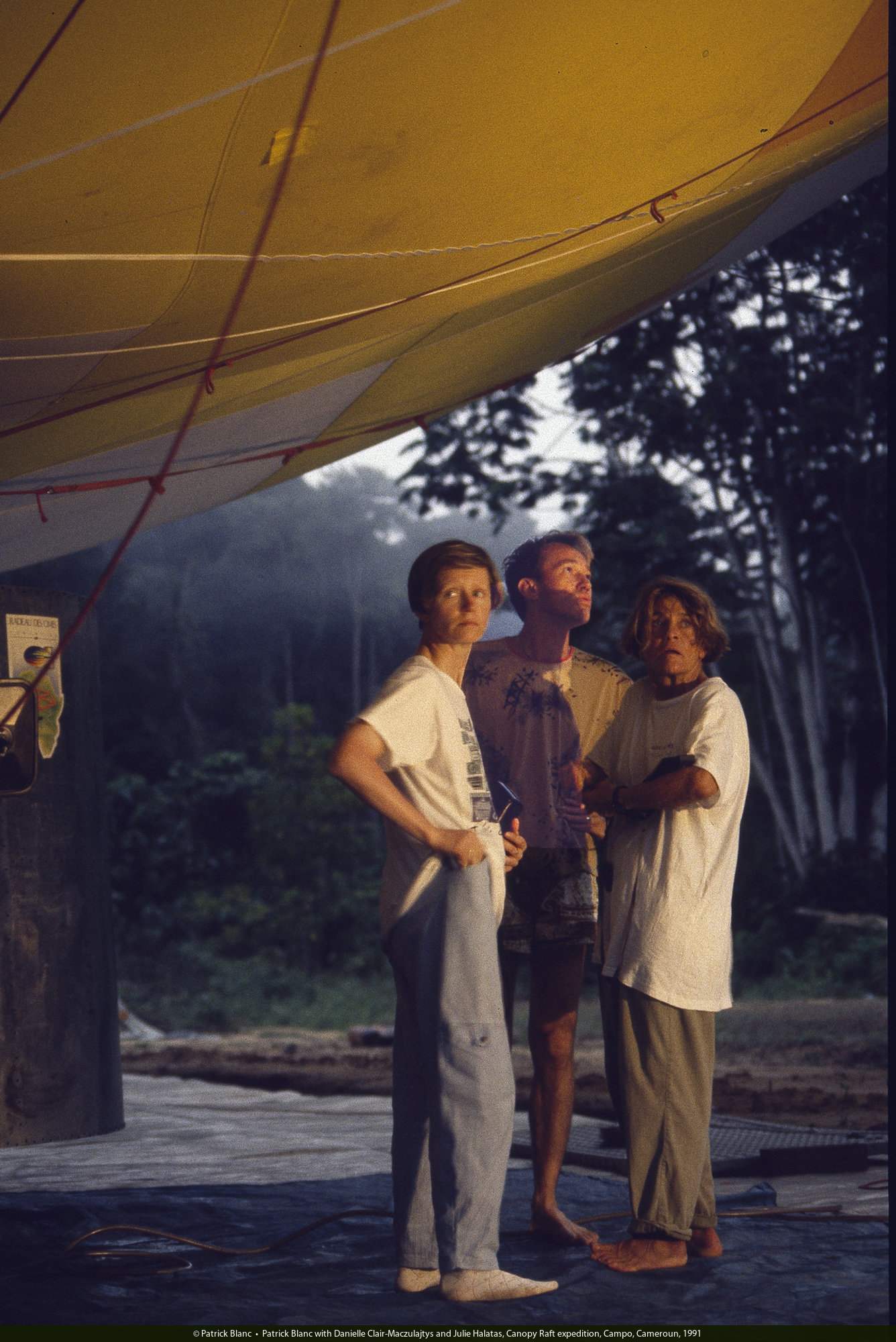 Patrick Blanc with Danielle Clair-Maczulajtys and Julie Halatas, Canopy Raft expedition, Campo, Cameroun, 1991