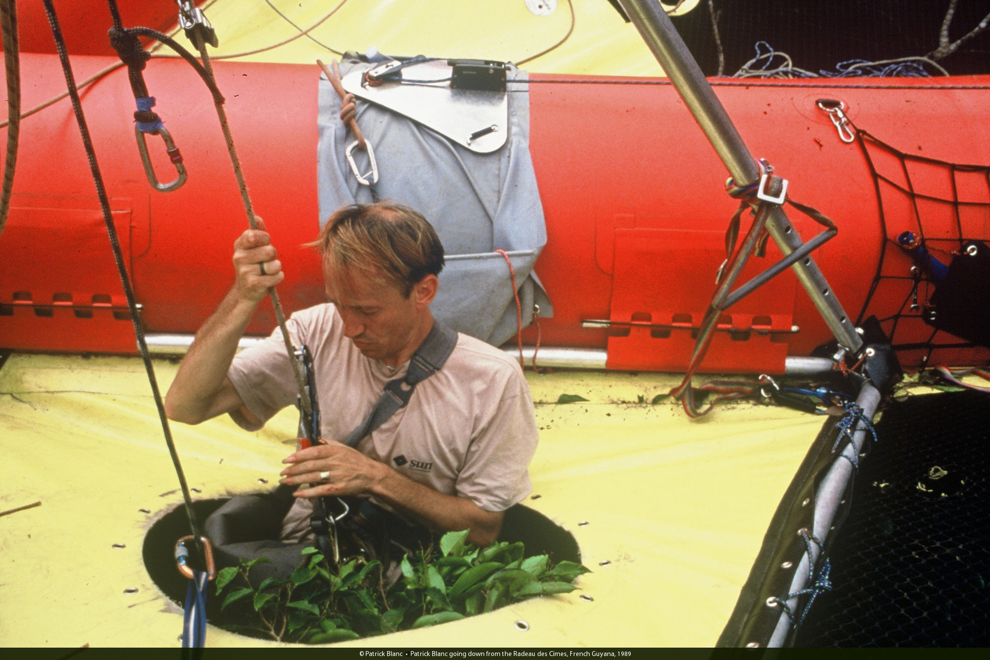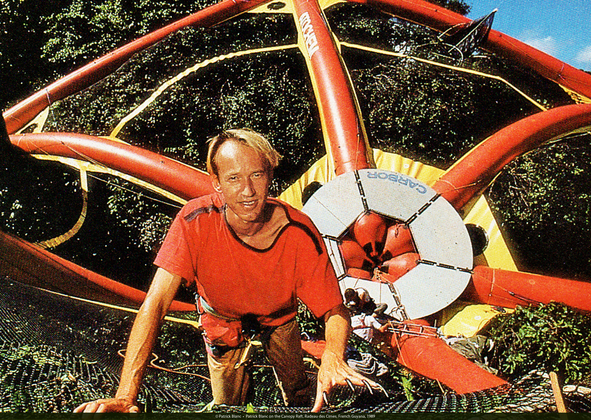 Patrick Blanc on the Canopy Raft, Radeau des Cimes, French Guyana, Oct. 1989