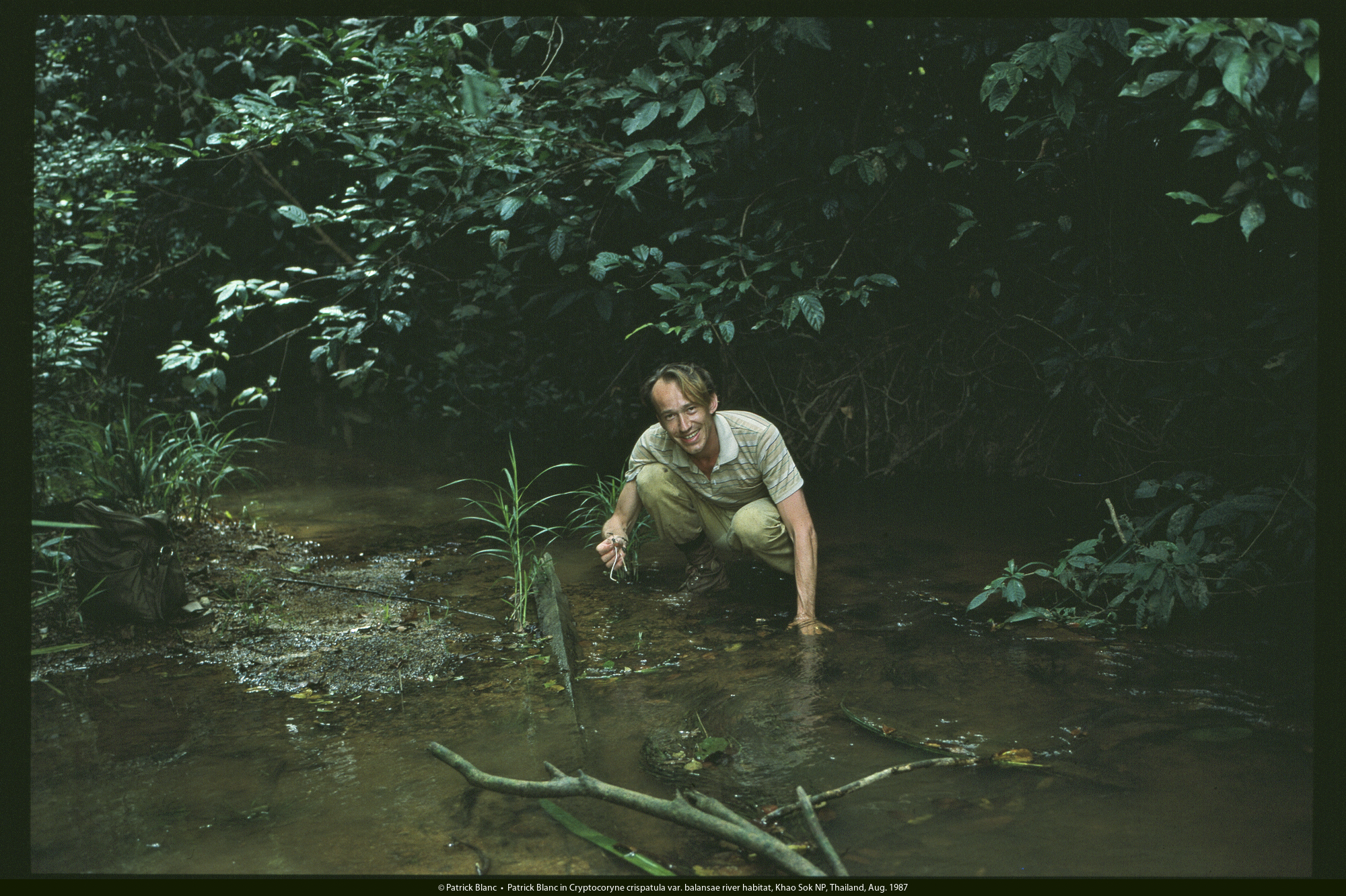 Patrick Blanc in Cryptocoryne crispatula var. balansae river habitat, Khao Sok NP, Thailand, Aug. 1987