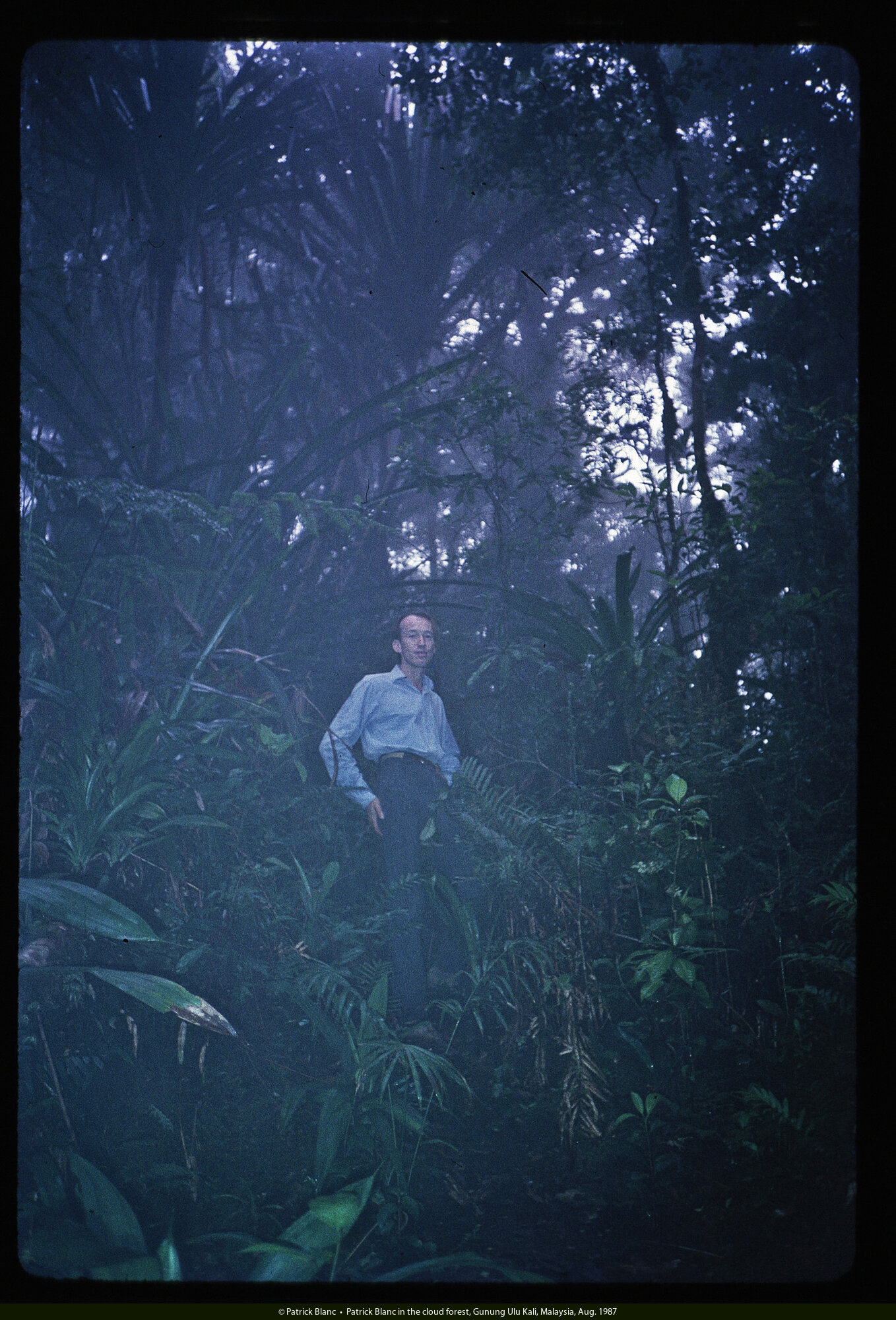 Patrick Blanc in the cloud forest, Gunung Ulu Kali, Malaysia, Aug. 1987