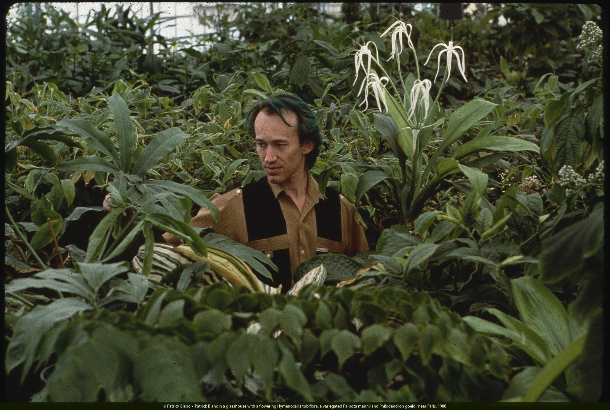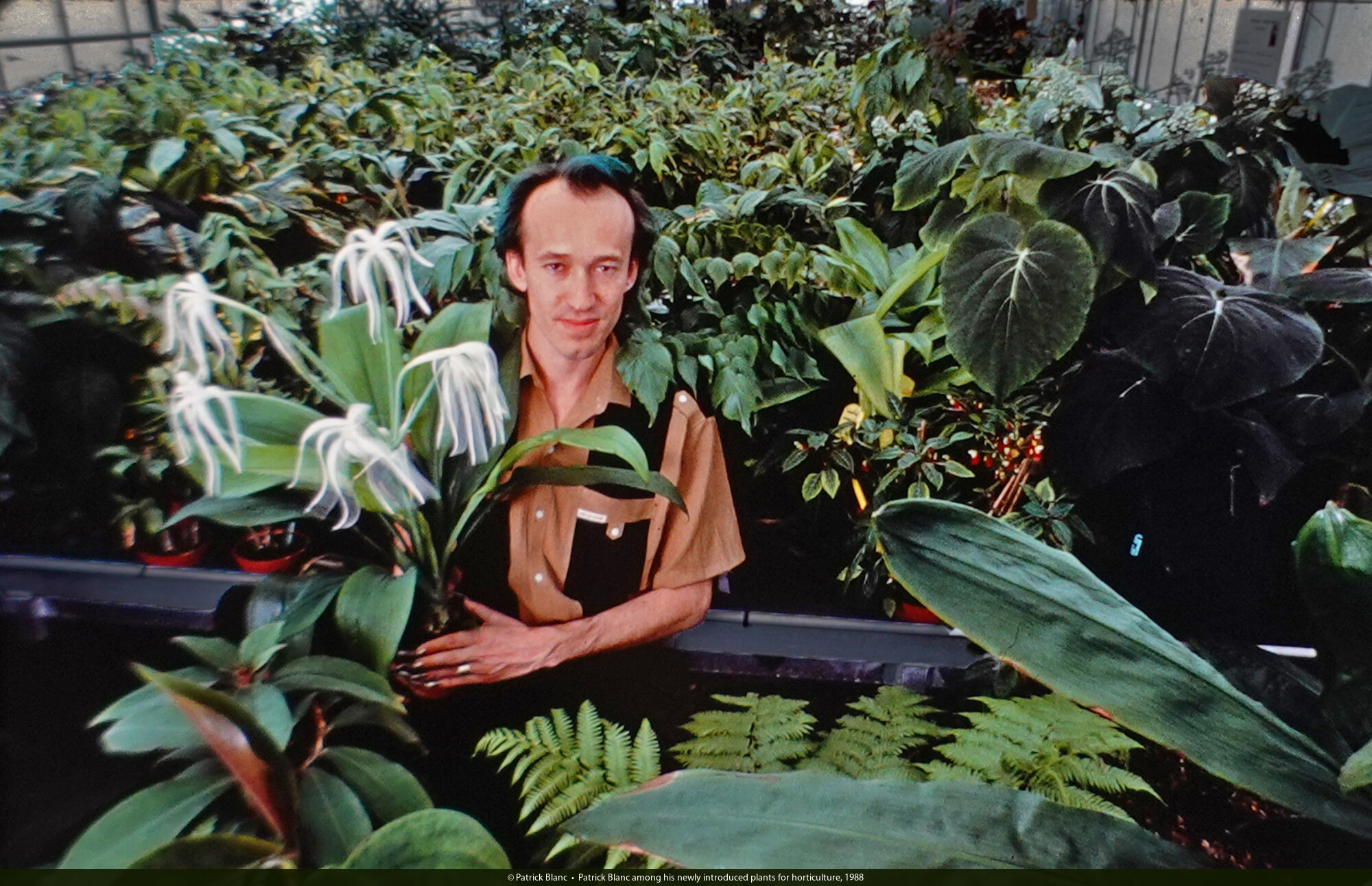 Patrick Blanc among newly introduced plants, Paris, 1988