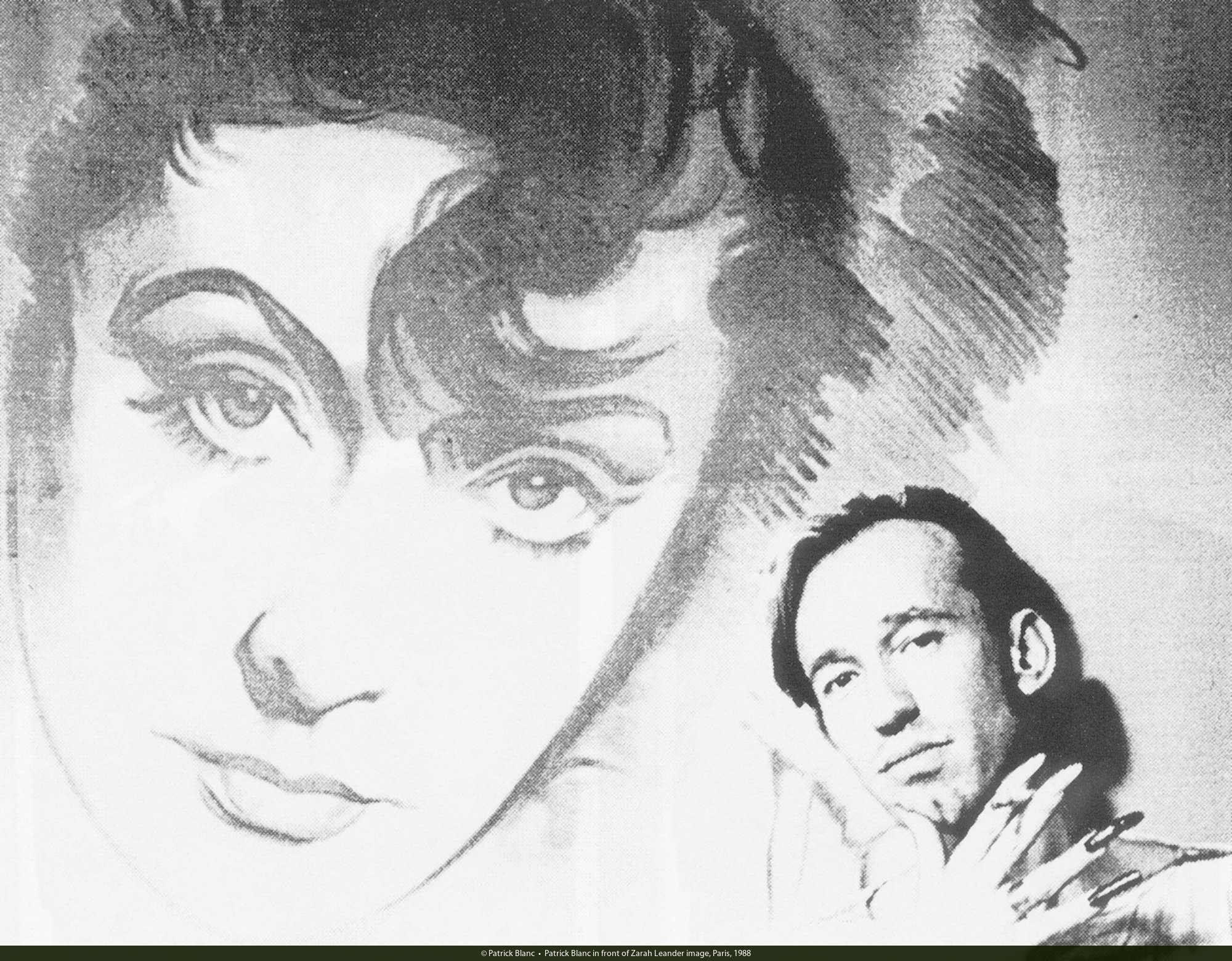 Patrick Blanc in front of Zarah Leander image, Paris, 1988