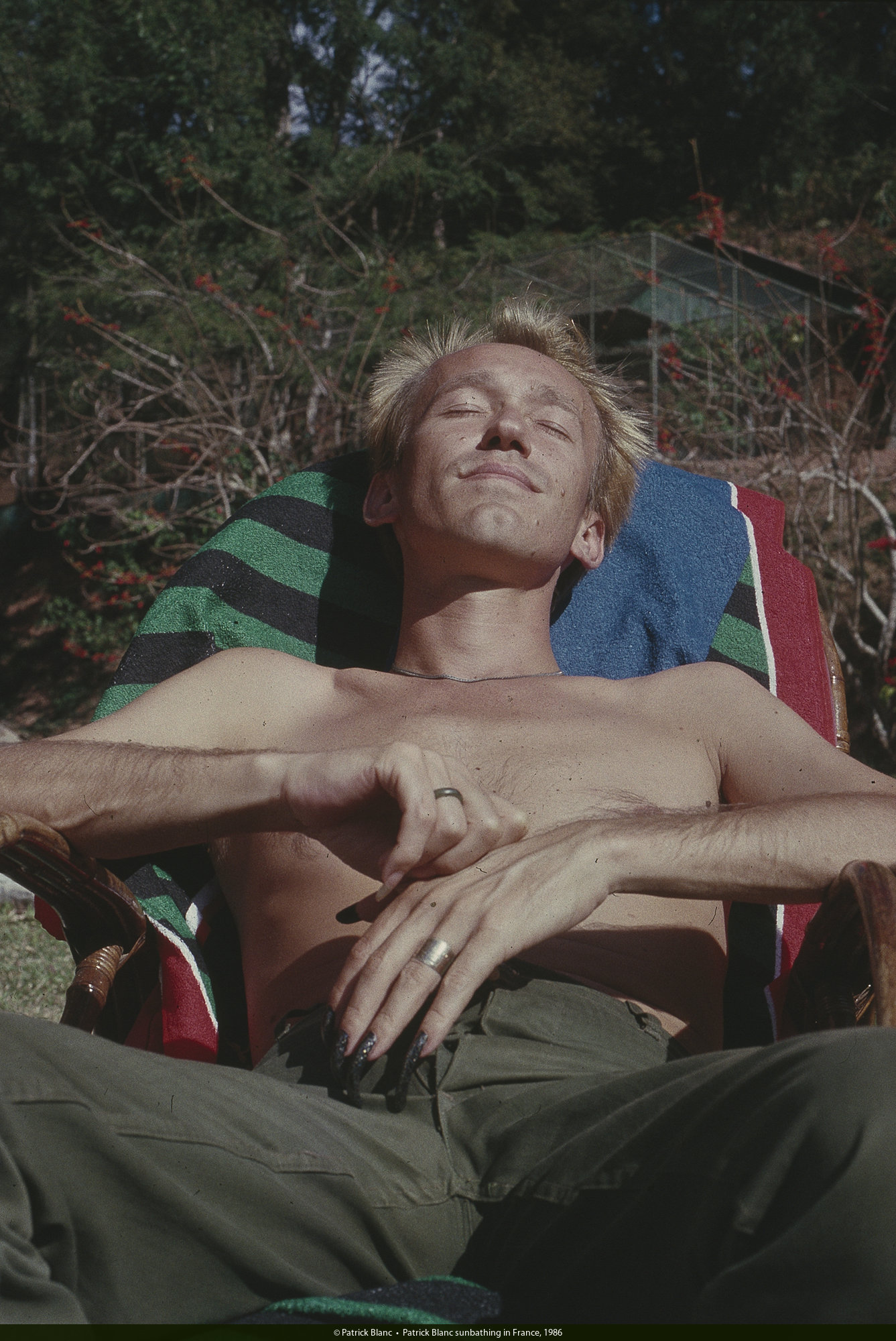 Patrick Blanc sunbathing in France, July 1986