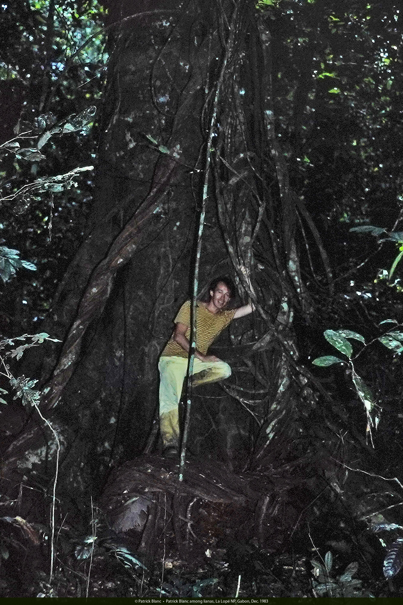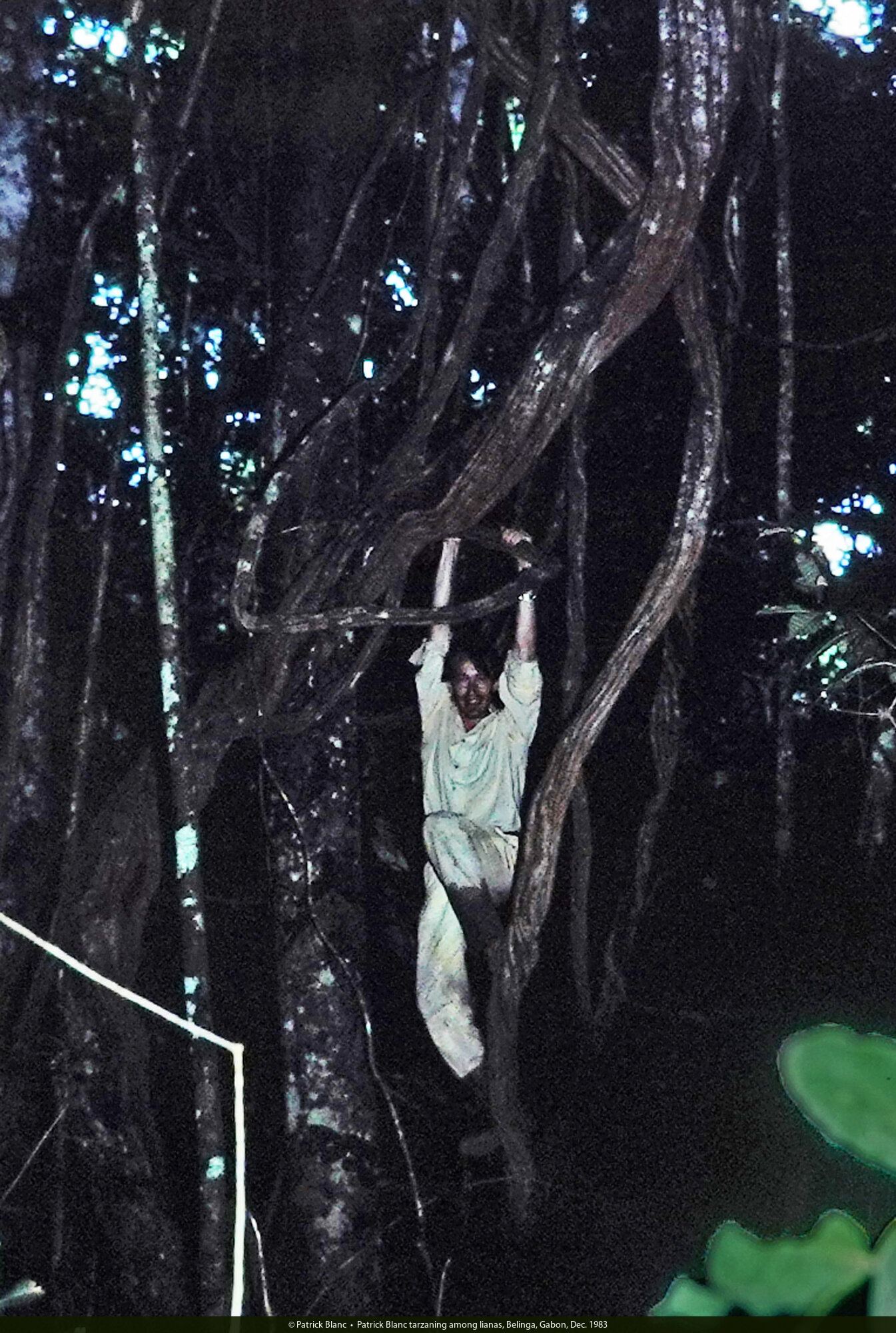 Patrick Blanc among lianas, La Lopé NP, Gabon, Dec. 1983
