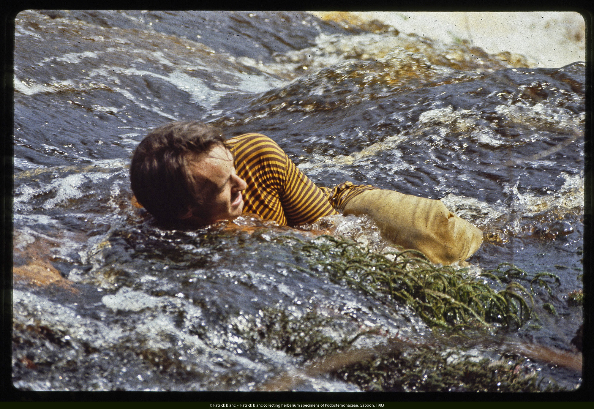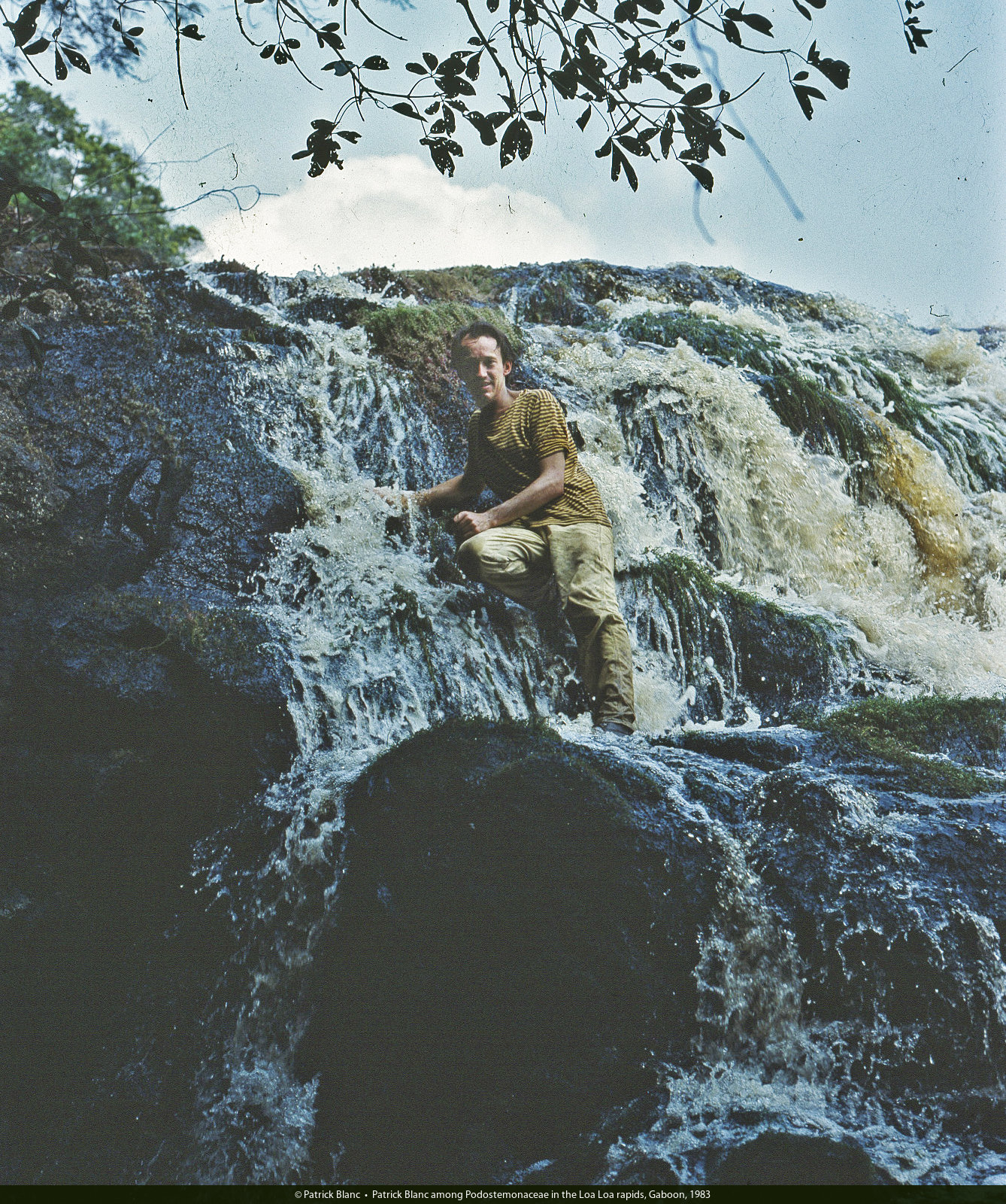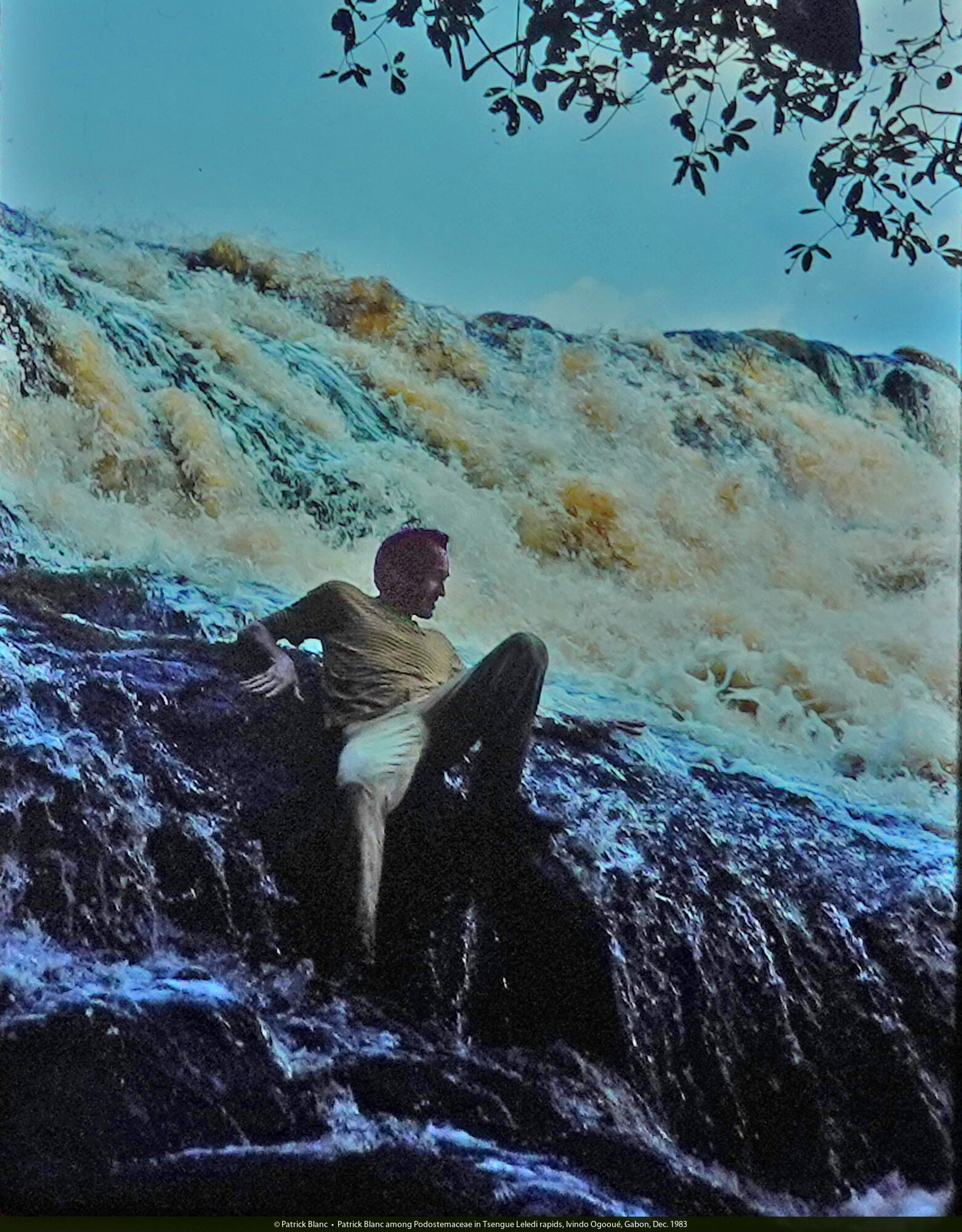 Patrick Blanc among Podostemaceae in the Loa Loa rapids, Gabon, Dec. 1983