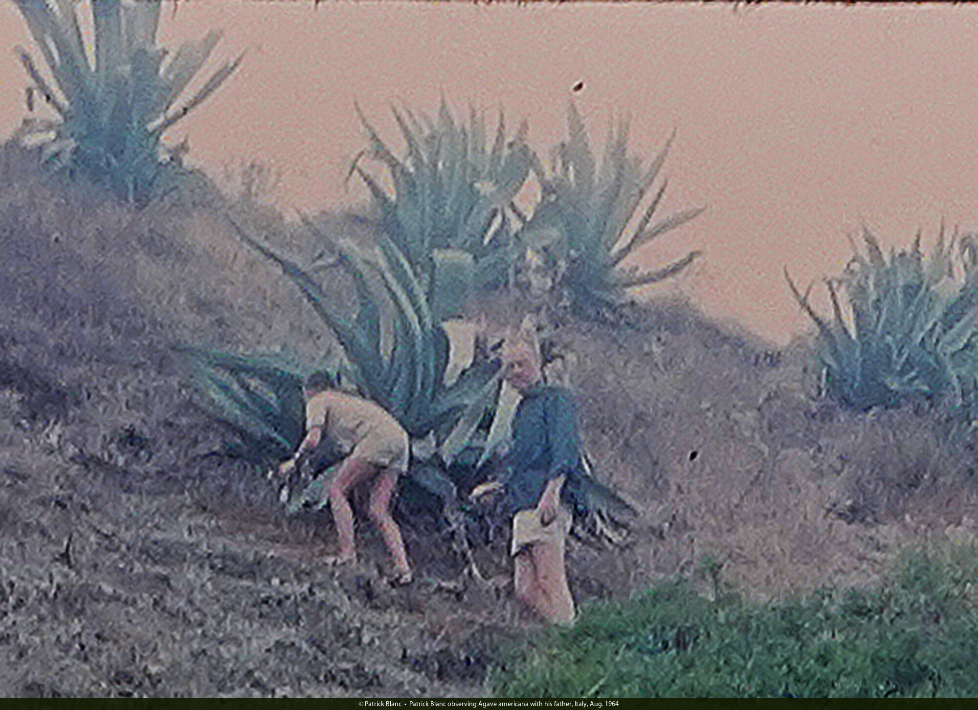 Patrick Blanc observing Agave americana with his father, Italy, Aug. 1964
