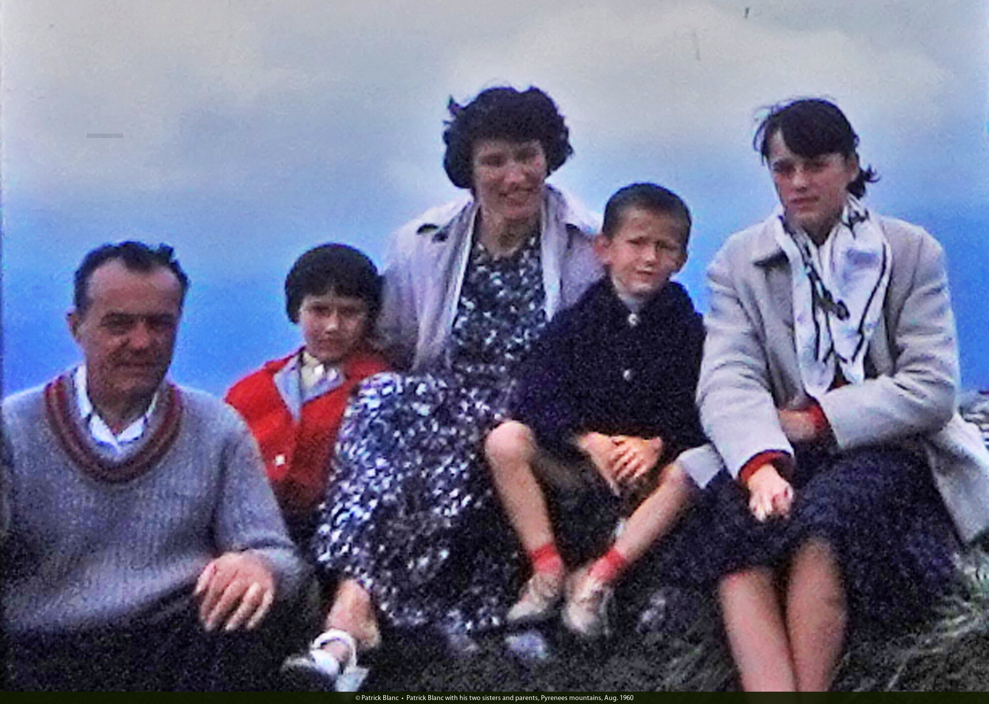 Patrick Blanc with his two sisters and parents, Pyrenees mountains, Aug. 1960
