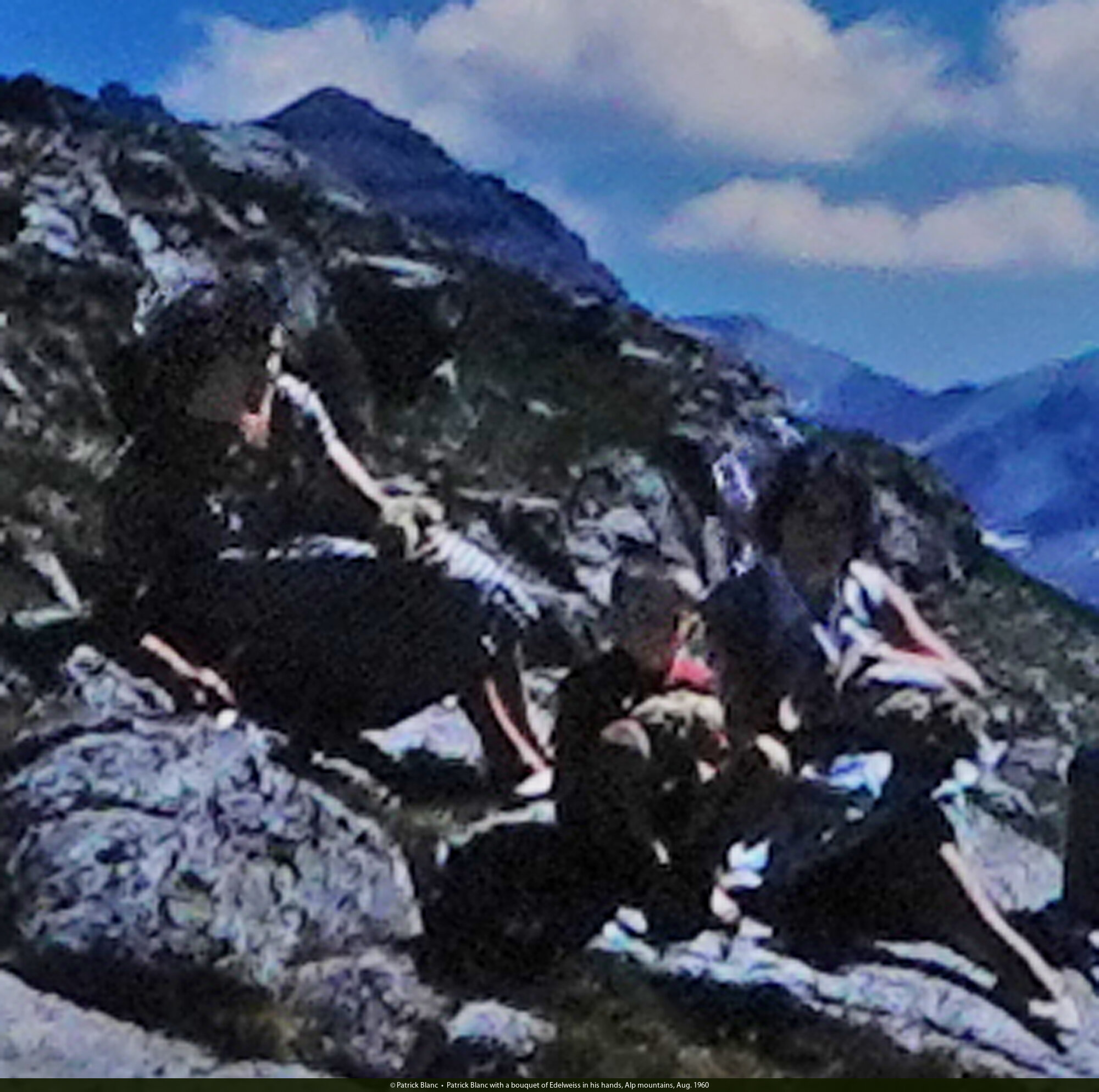 Patrick Blanc with a bouquet of Edelweiss in his hands, Alp mountains, Aug. 1960