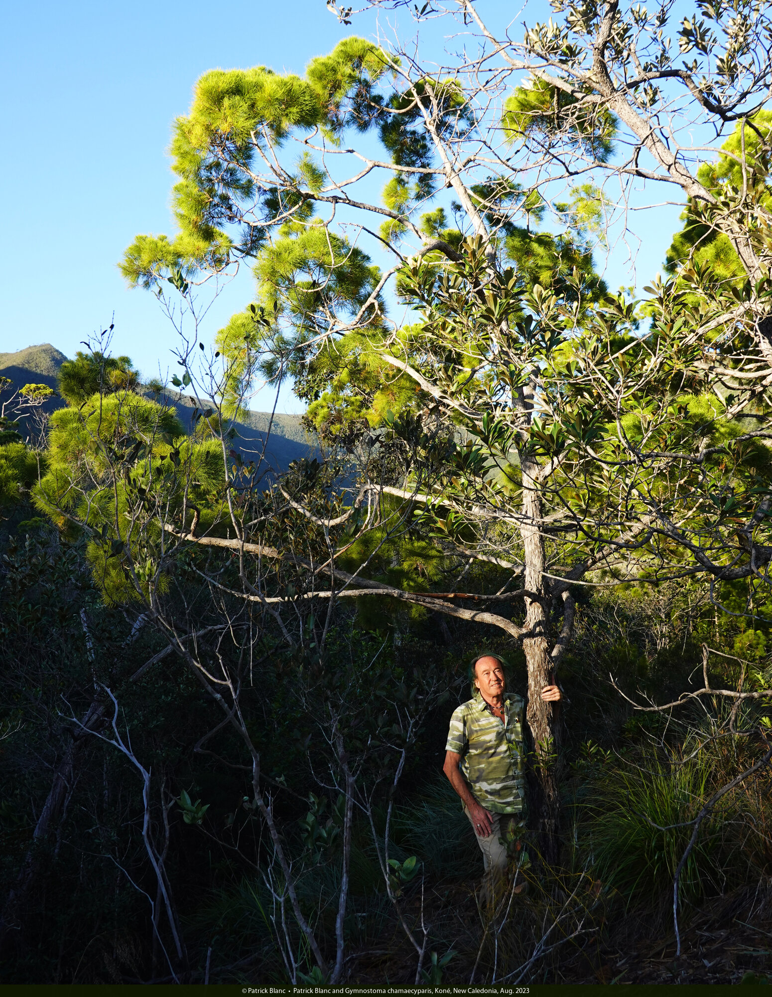 Patrick Blanc and Gymnostoma chamaecyparis, Koné, New Caledonia, Aug. 2023