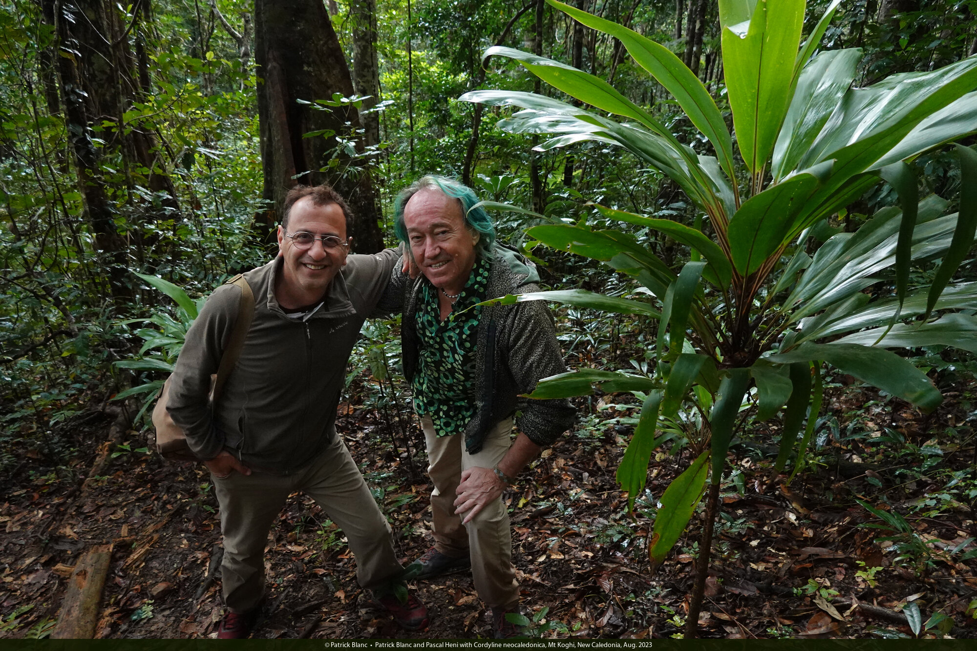 Patrick Blanc and Pascal Heni with Cordyline neocaledonica, Mt Koghi, New Caledonia, Aug. 2023