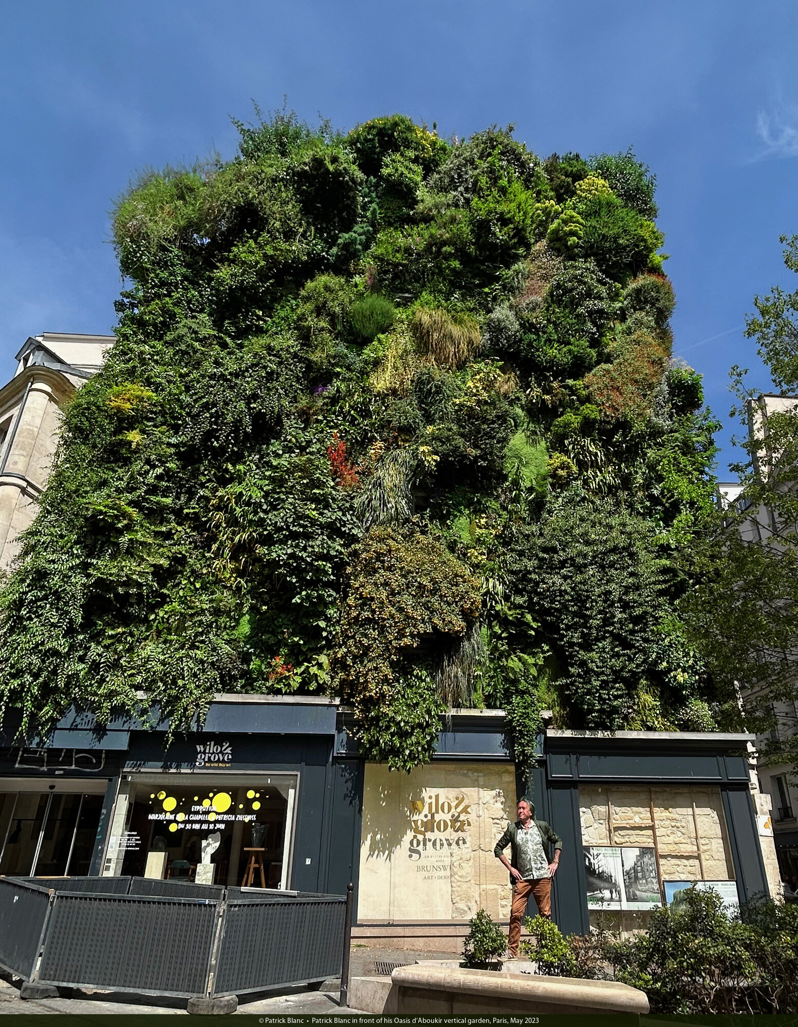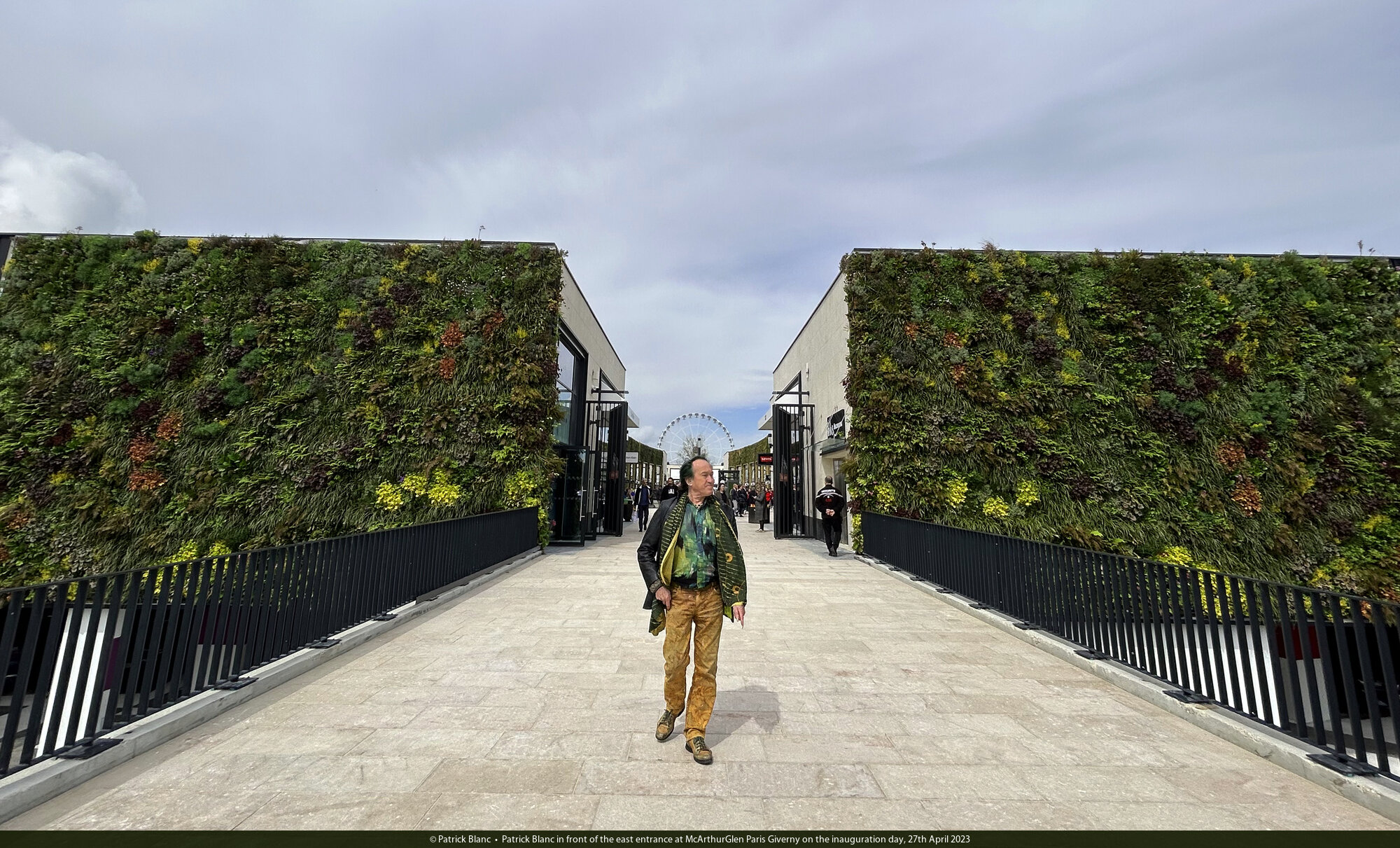 Patrick Blanc in front of the east entrance at McArthurGlen Paris Giverny on the inauguration day, 27th April 2023
