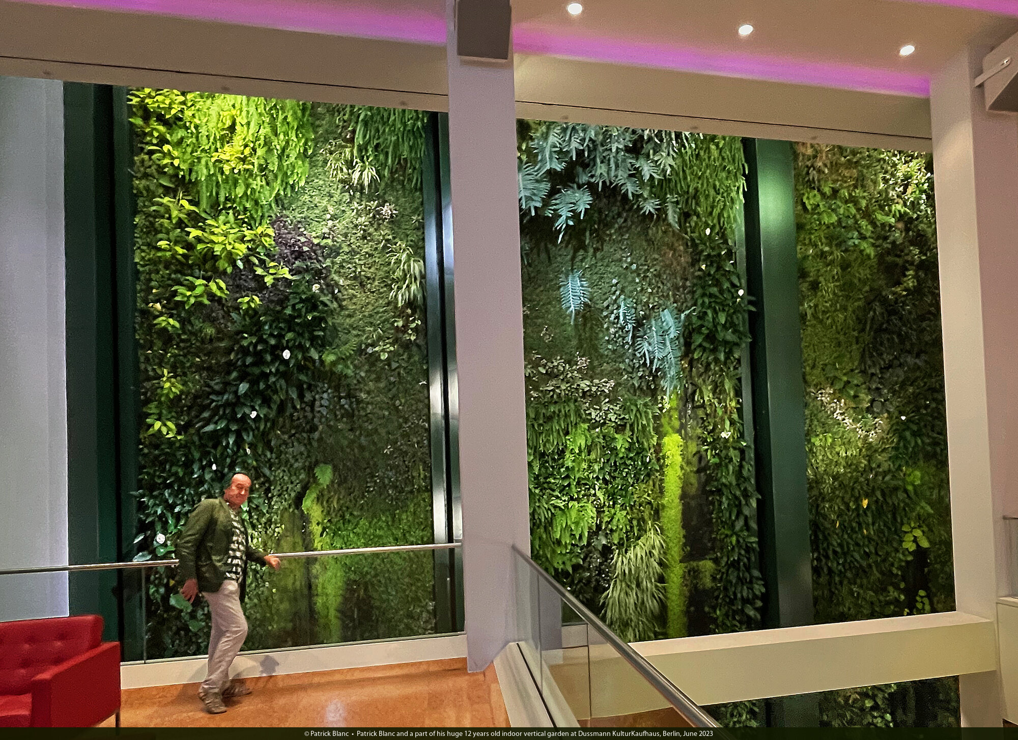Patrick Blanc and his huge 12 years old indoor vertical garden at Dussmann KulturKaufhaus, Berlin, June 2023