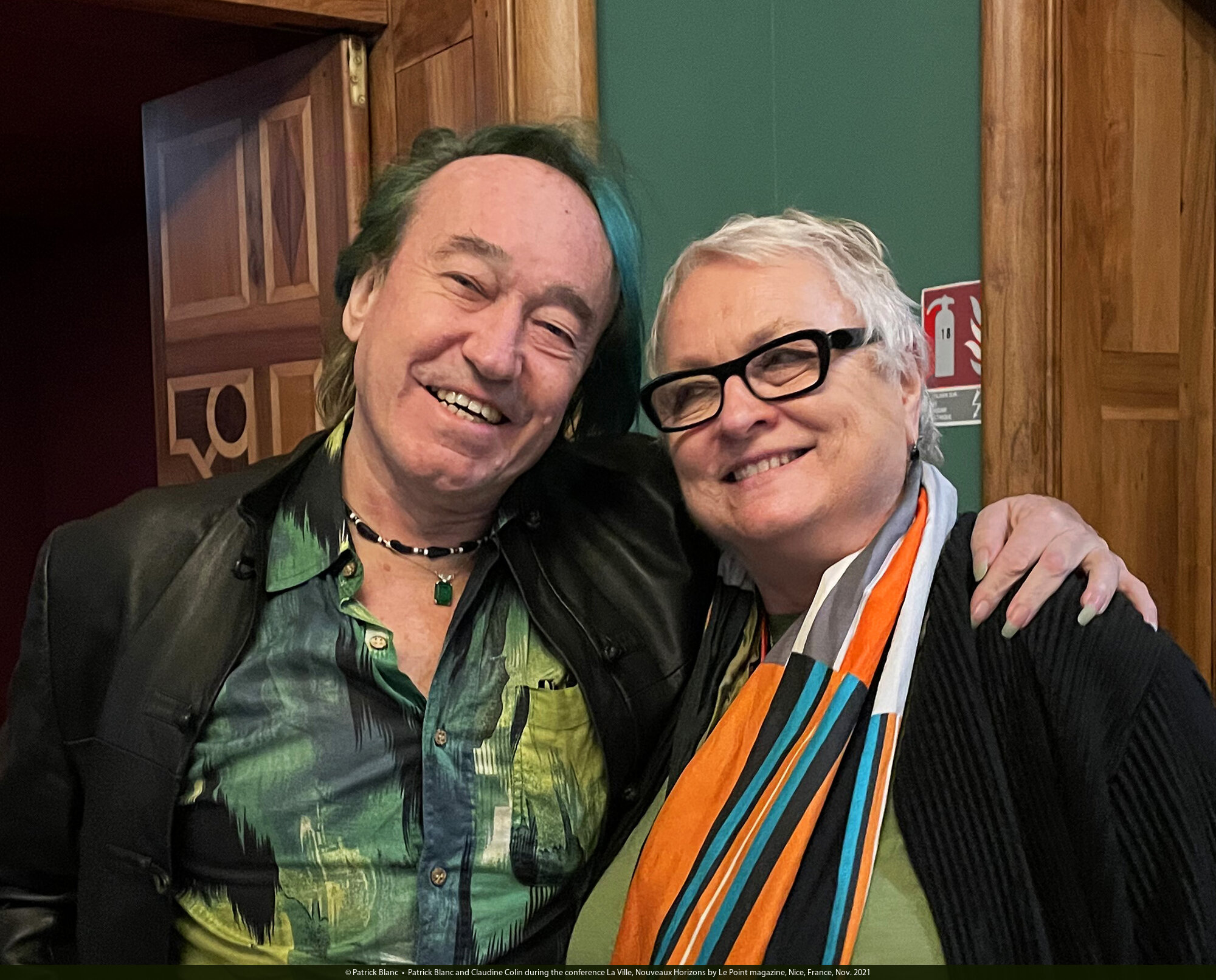 Patrick Blanc and Claudine Colin during the conference La Ville, Nouveaux Horizons by Le Point magazine, Nice, France, Nov. 2021